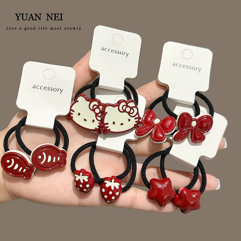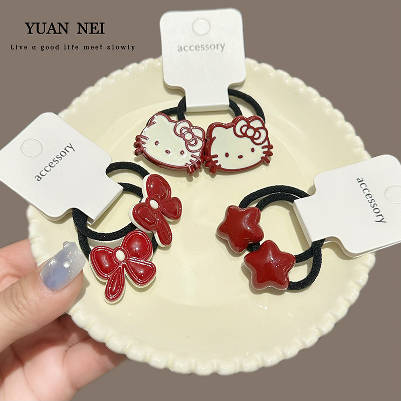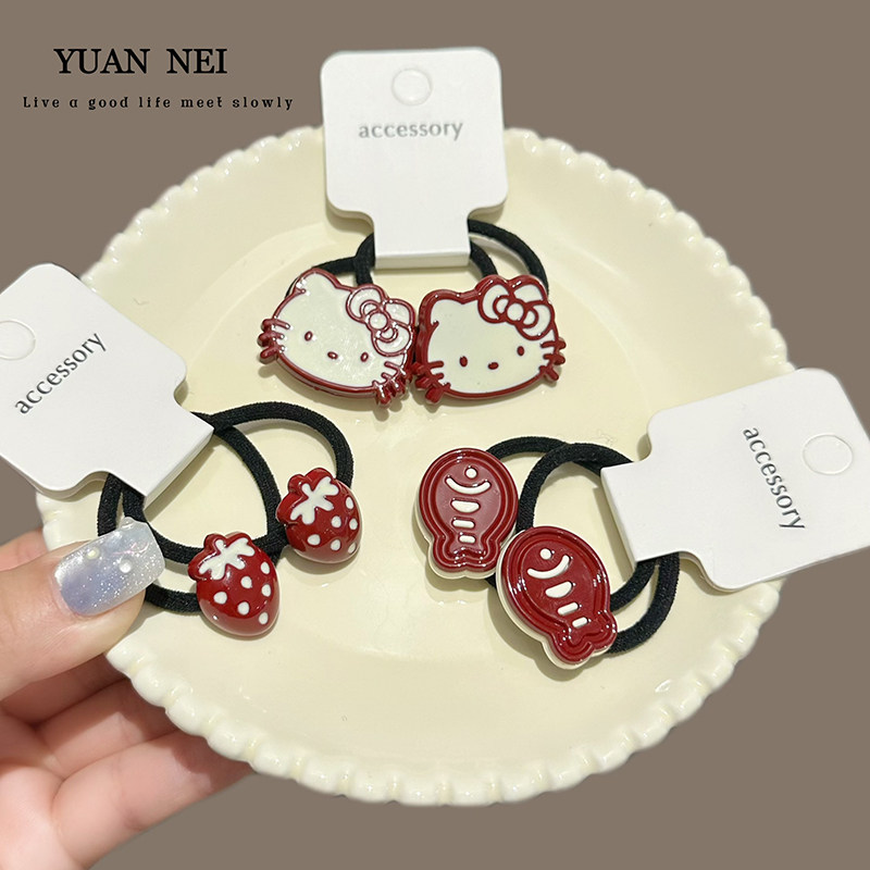 📚 百搭马尾辫发绳儿童发饰喜庆节日女孩皮筋可爱小猫头饰耐用发圈女