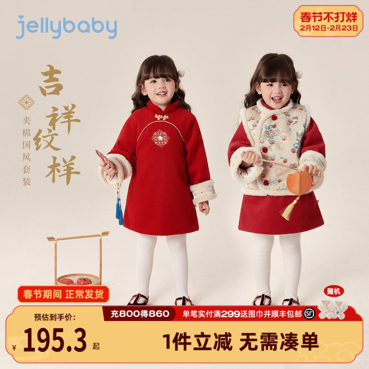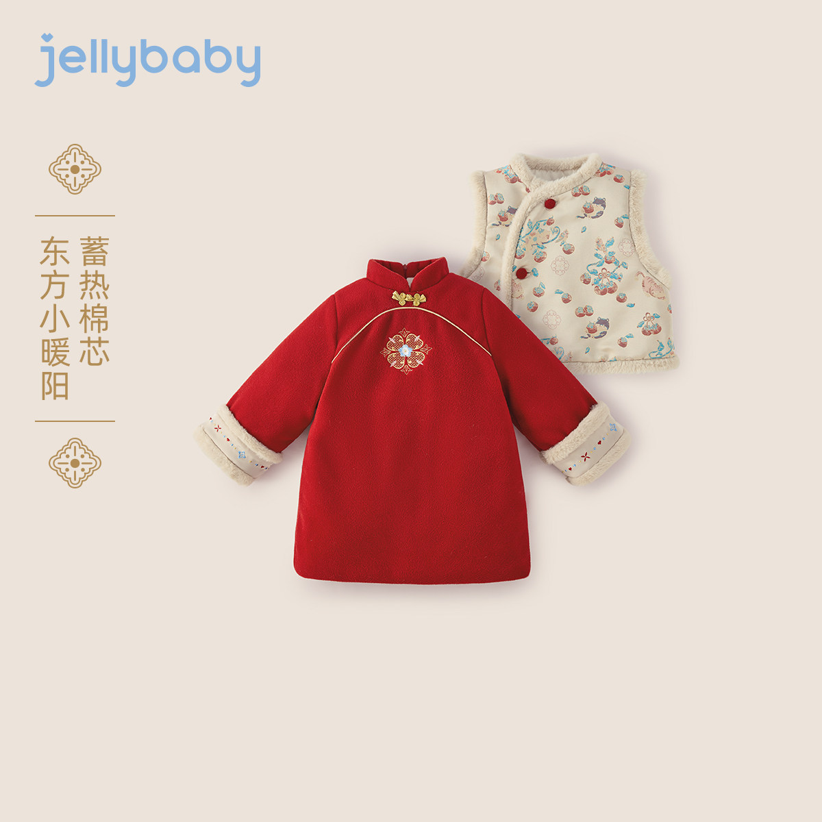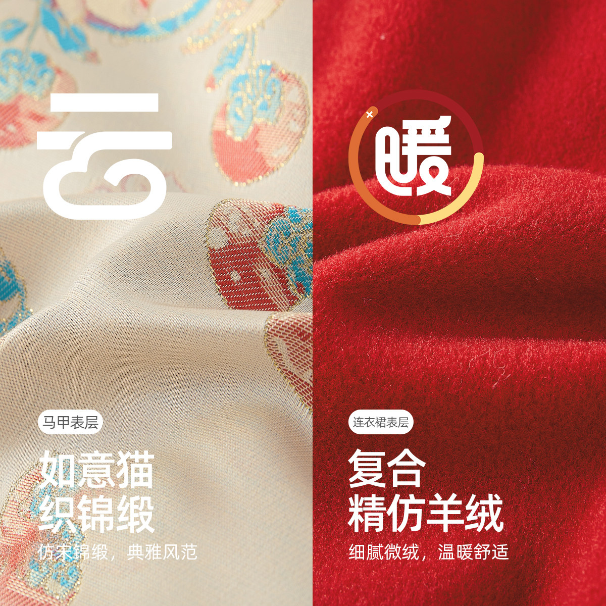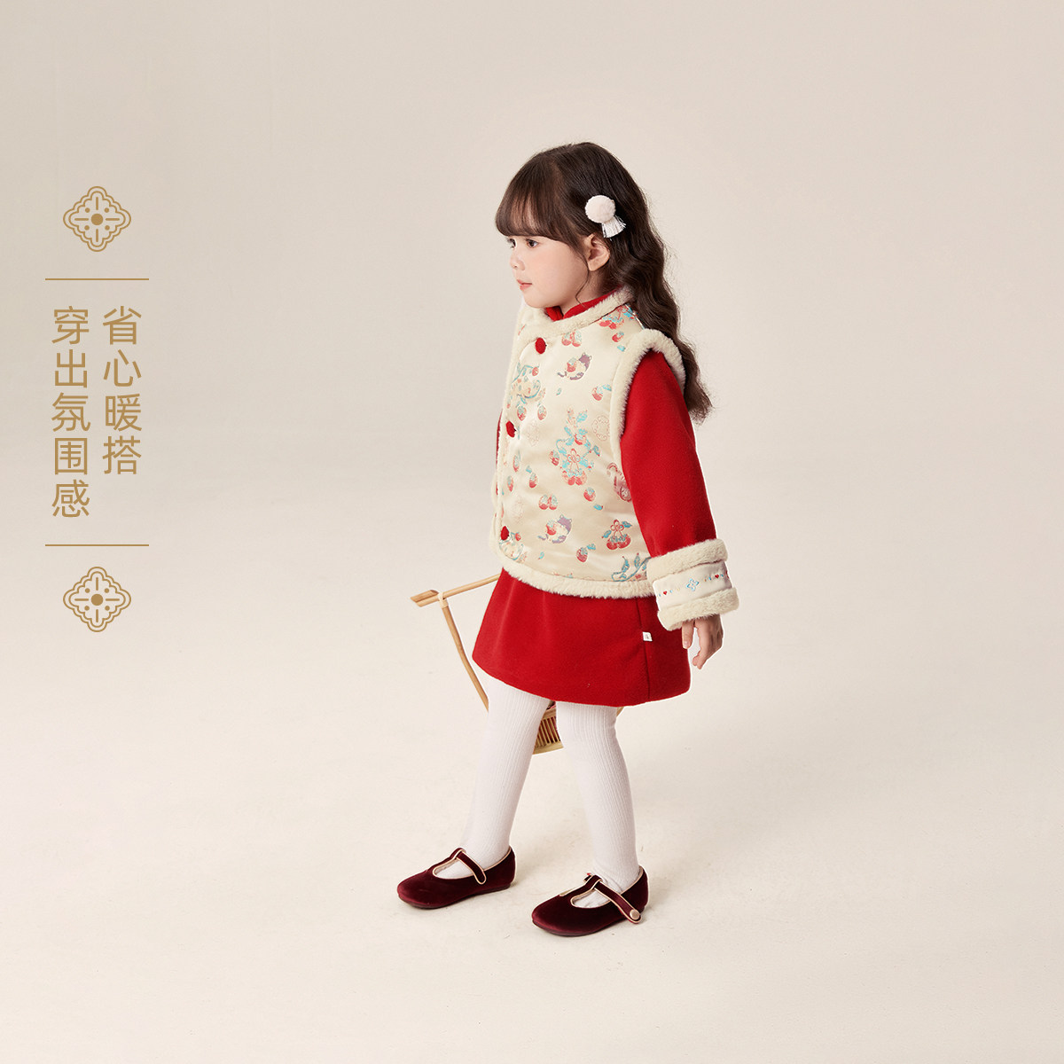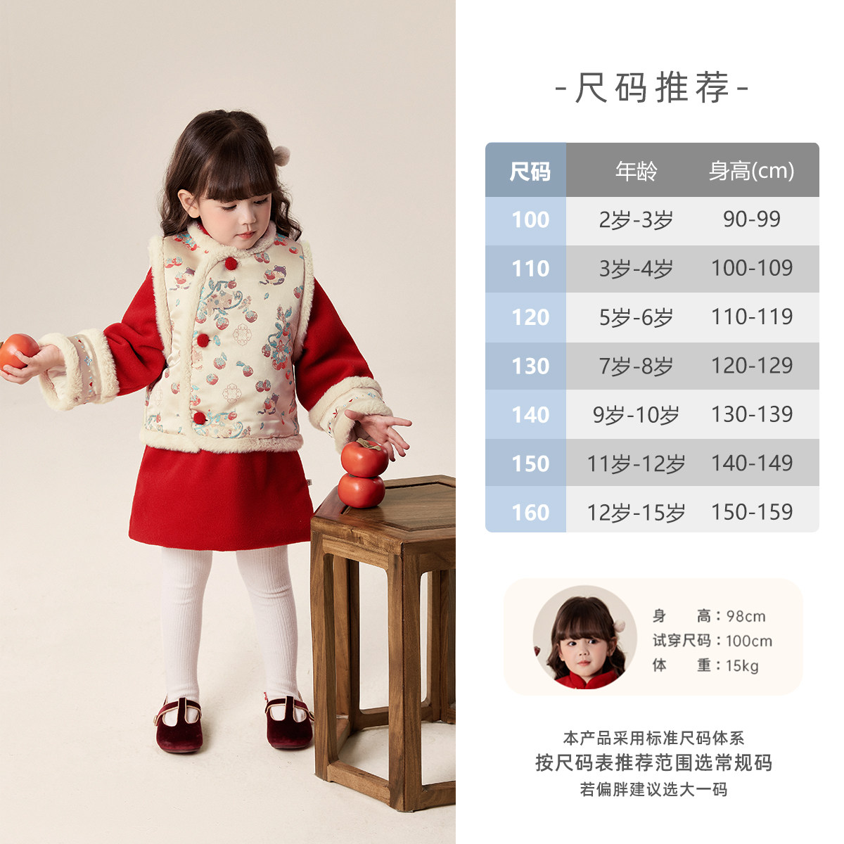 📚 [7A抑菌]女童国风连衣裙儿童冬加绒唐装两件套红色吉祥过年拜年服
