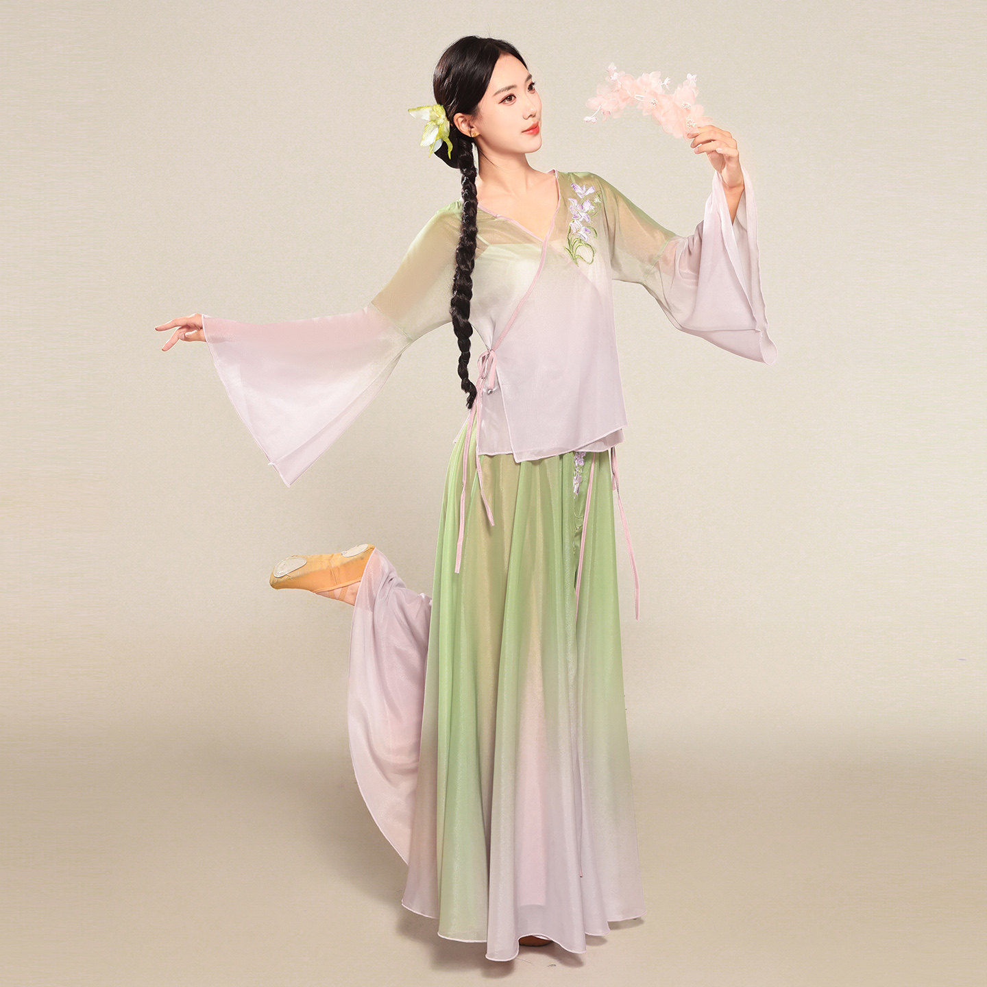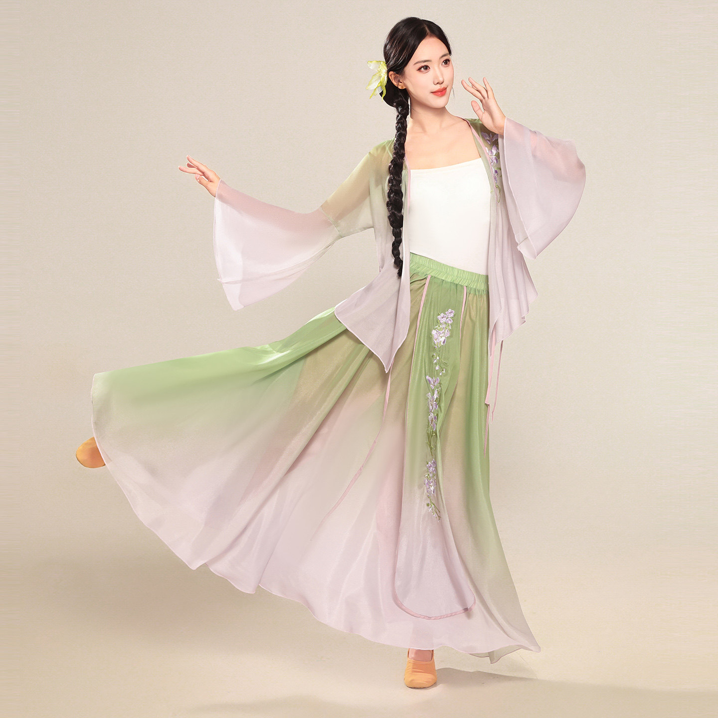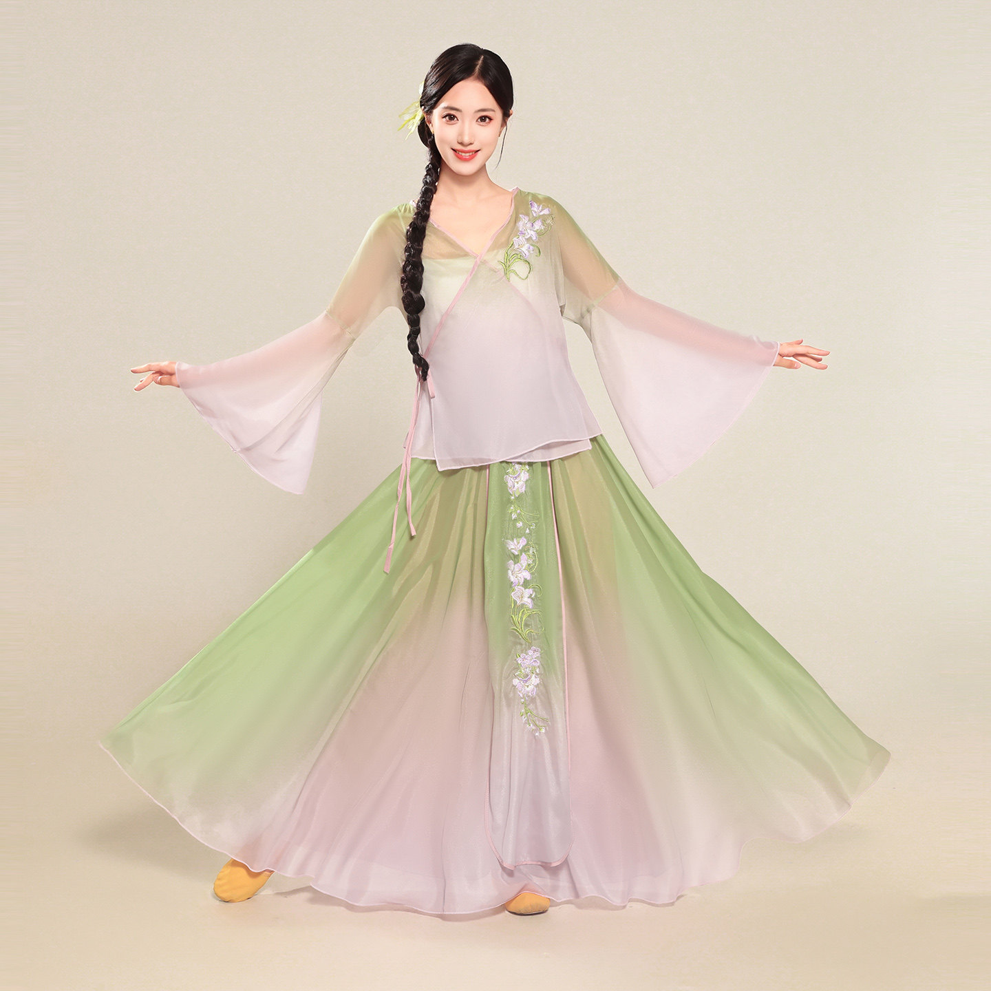 📚 古典舞蹈服新中式国风渐变印花刺绣套装飘逸大摆裙中国舞演出服