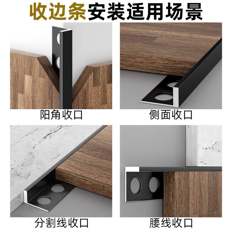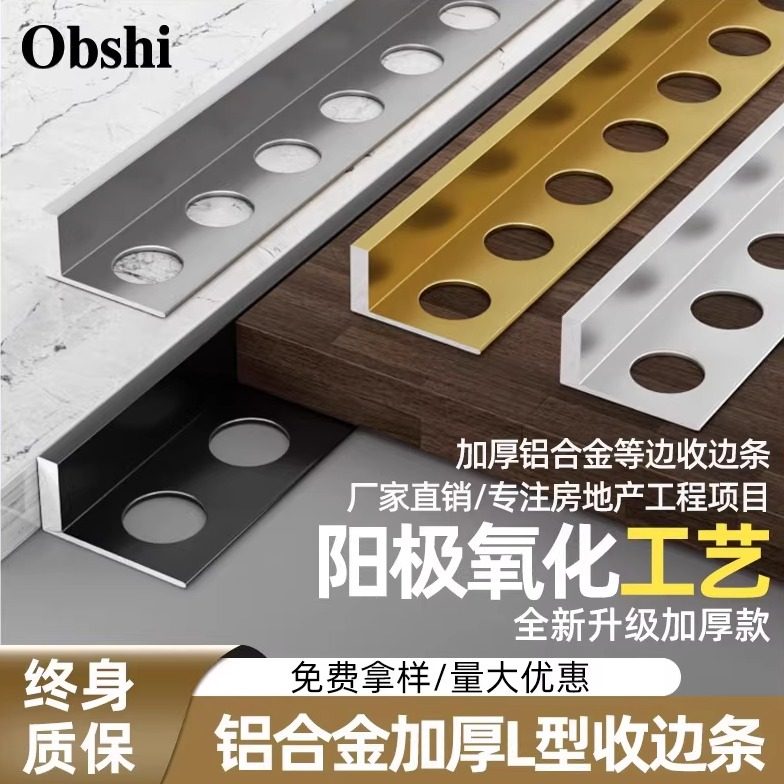 📚 铝合金L型瓷砖封边条压条木地板收边条金属极窄收口条背景装饰条