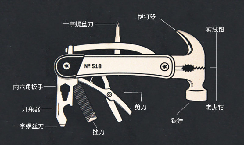 📚 Gentlemen's Hardware多功能万用便携折叠随身一体口袋铁锤子工具