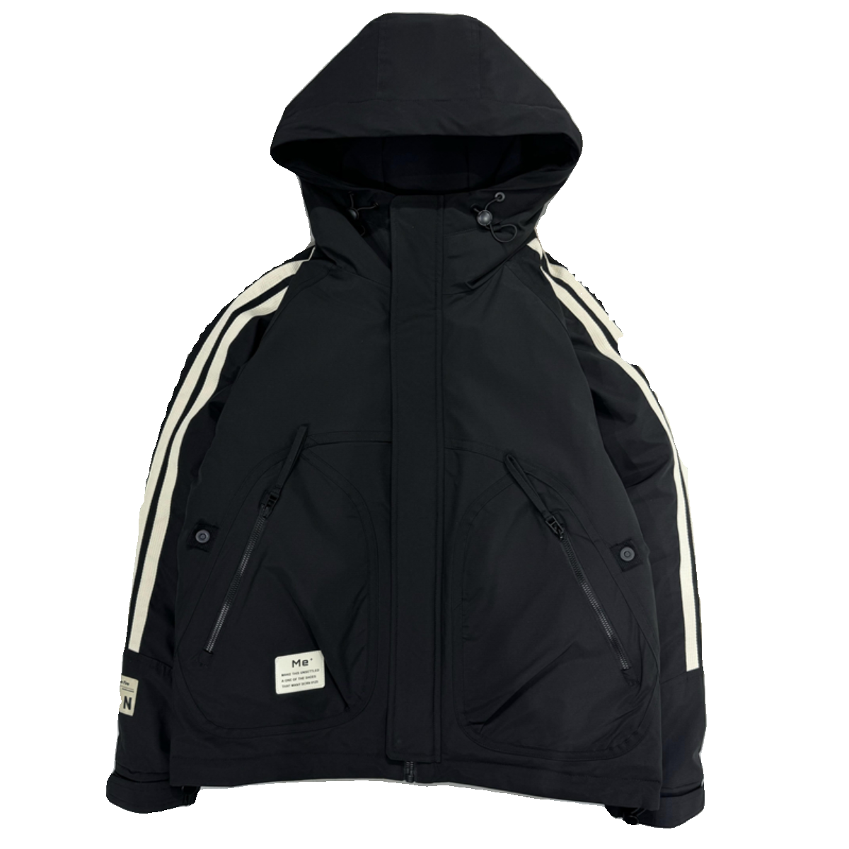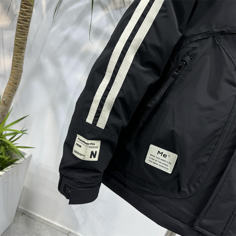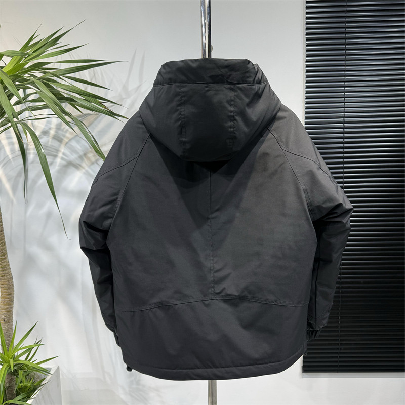 📚 冬季条纹连帽羽绒服男士潮流百搭防风保暖上衣时尚帅气白鸭绒外套