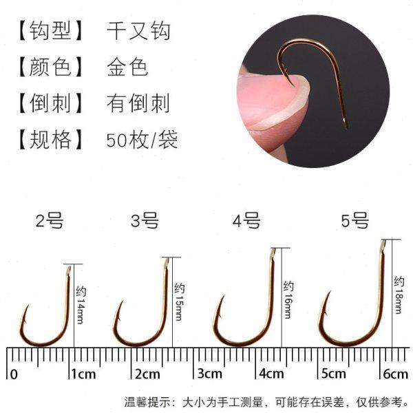 📚 KASE上金千又2-5号金色千又钓钩/矶钓黑鲷鱼钩/倒刺海钓钩50枚装
