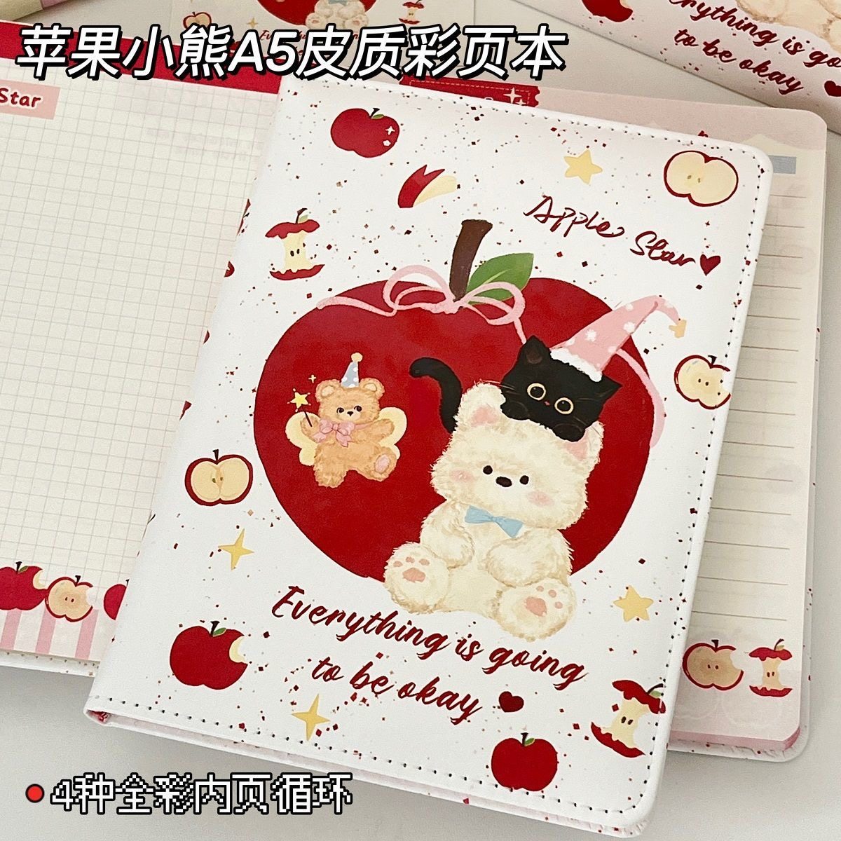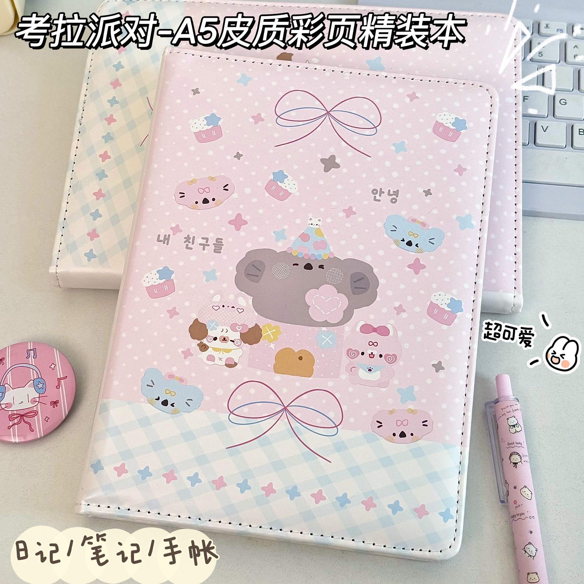 📚 A5精装本动物派对皮质彩页笔记本ins风高颜值日记本可爱卡通错题本学生作业登记本初中生专用手账本记事本子