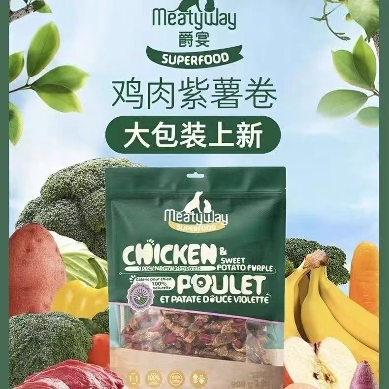 📚 Meatyway爵宴鸭肉缠甘薯卷磨牙训练奖励胡萝卜鸡肉干狗狗宠物零食