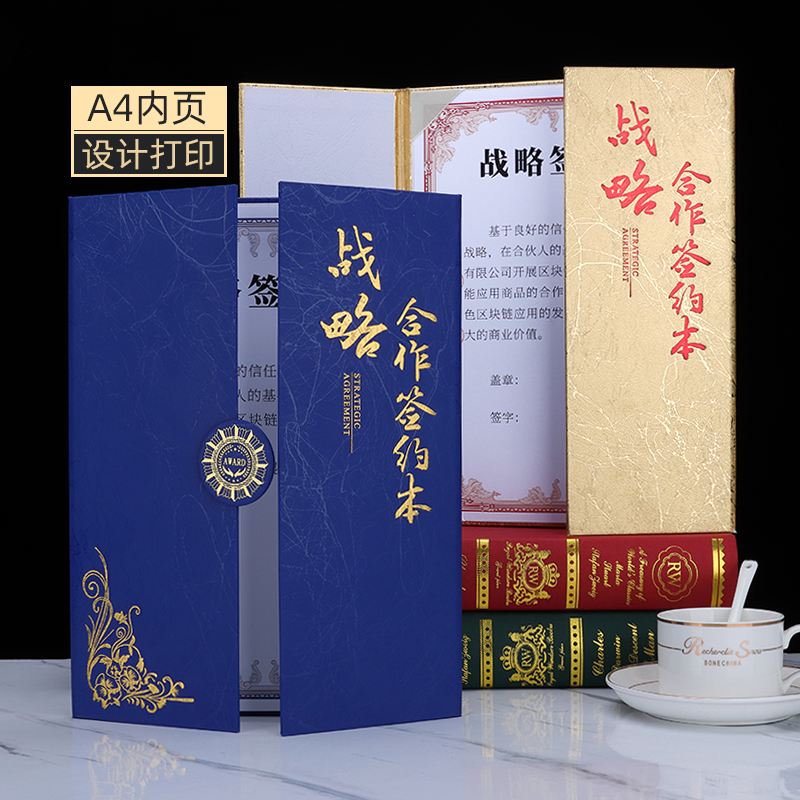 📚 战略合作签约本外壳定制高档签约仪式本a4签约书封面定做协议书合同书三折合伙人股权证荣誉证书拜师帖邀请函