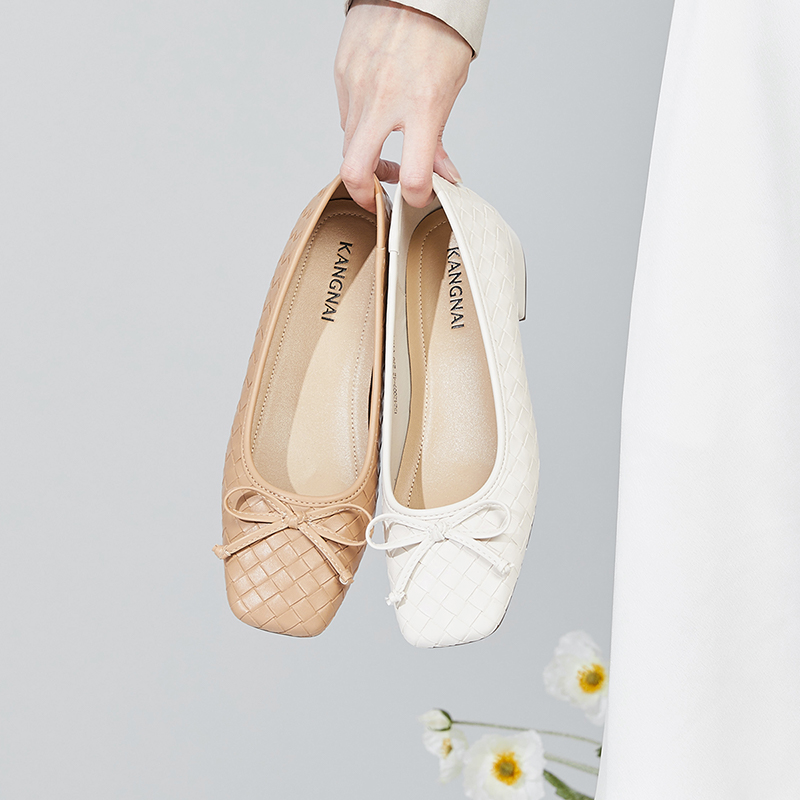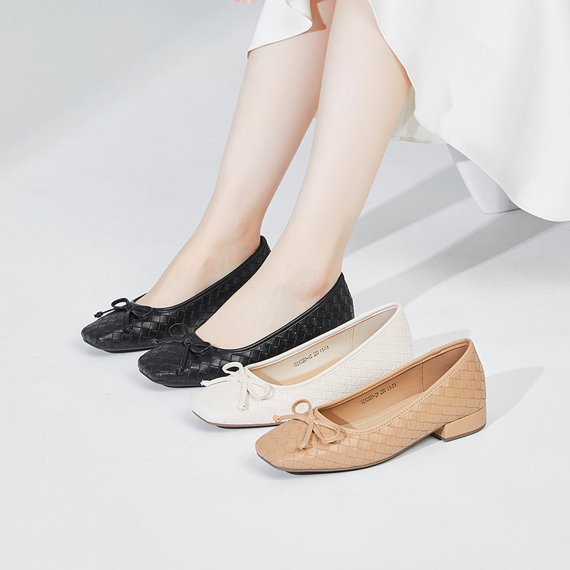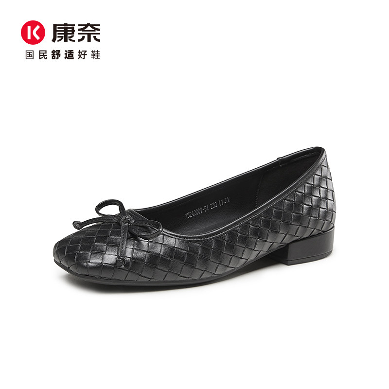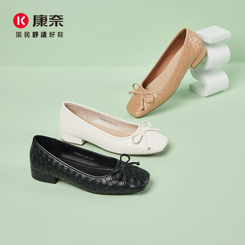 📚 康奈秋季蝴蝶结浅口单鞋女粗跟小香风菱格芭蕾鞋通勤女鞋