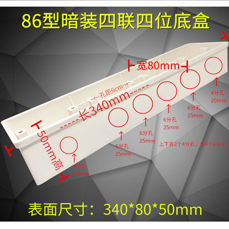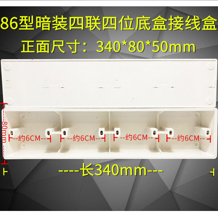 📚 86型暗盒通用暗装4位盒开关插座面板四联底盒暗线盒50mm深接线盒