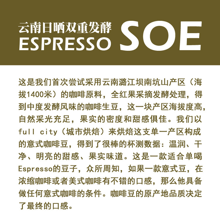 📚 特浓意式咖啡豆 新产季花魁X SOE/云南小粒日晒双重发酵SOE 454g