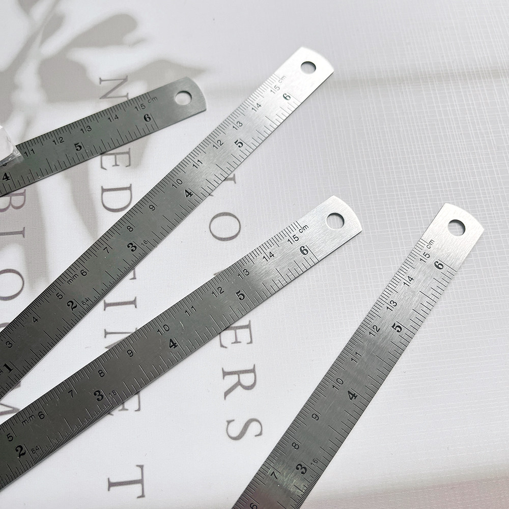 📚 四条装!不锈钢尺!英公制双刻度换算办公学生量尺子加厚钢尺15CM
