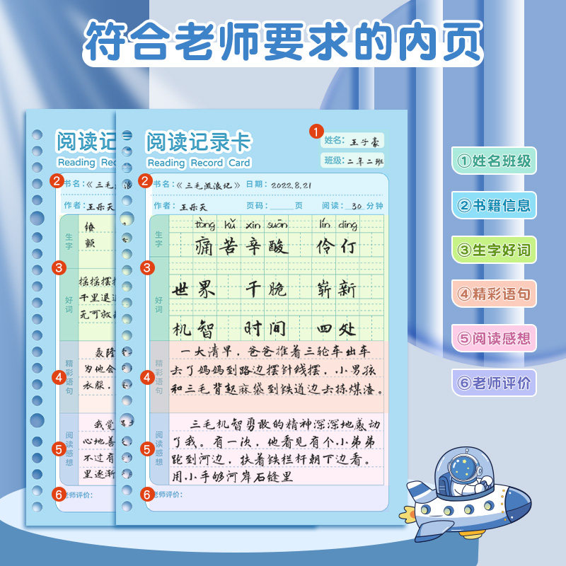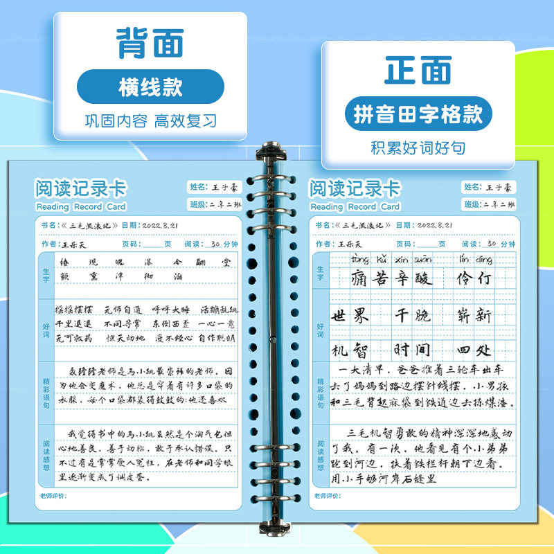 📚 阅读记录卡活页好词好句摘抄本拼音田字格读书笔记本小学生专用日积月累摘抄读后感一二三四年级积累阅读摘记
