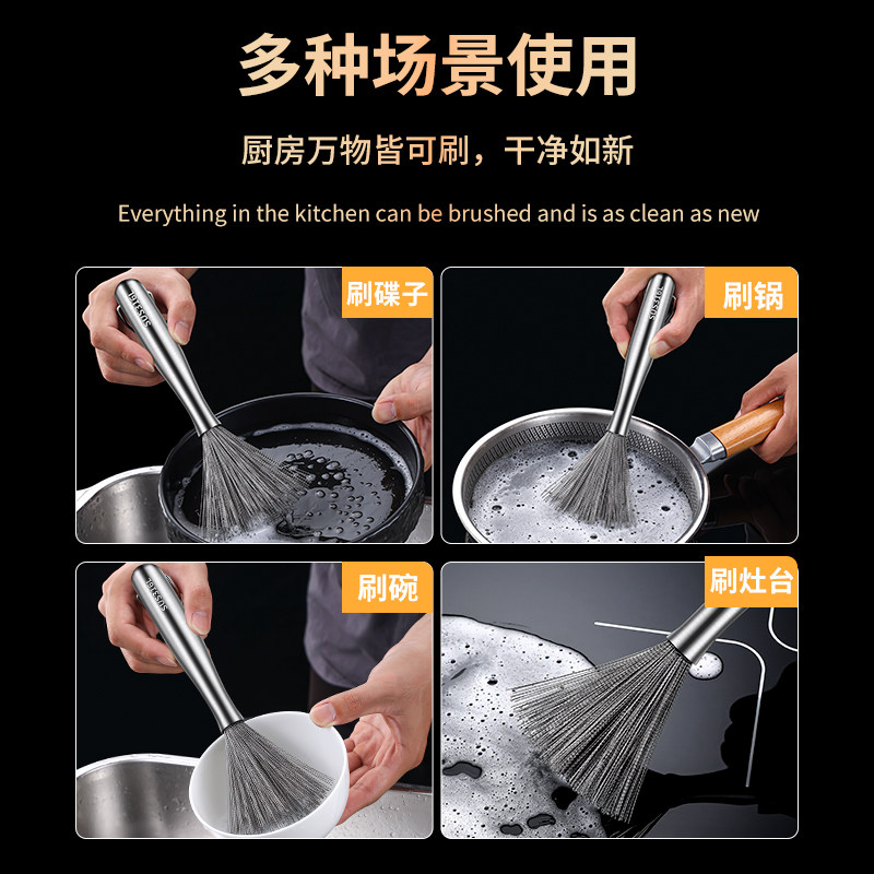 📚 316不锈钢锅刷家用长柄刷锅神器厨房专用不伤锅洗锅钢丝清洁刷子