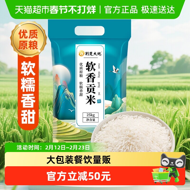 📚 荆楚大地软香贡米25kg南方大米50斤量贩装籼米长粒米