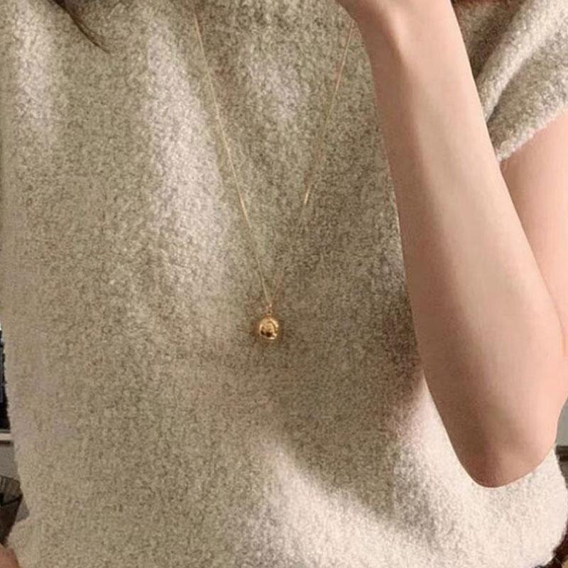 📚 沉甸甸的韩国博主同款小众设计实心圆球长项链女气质大银球毛衣链