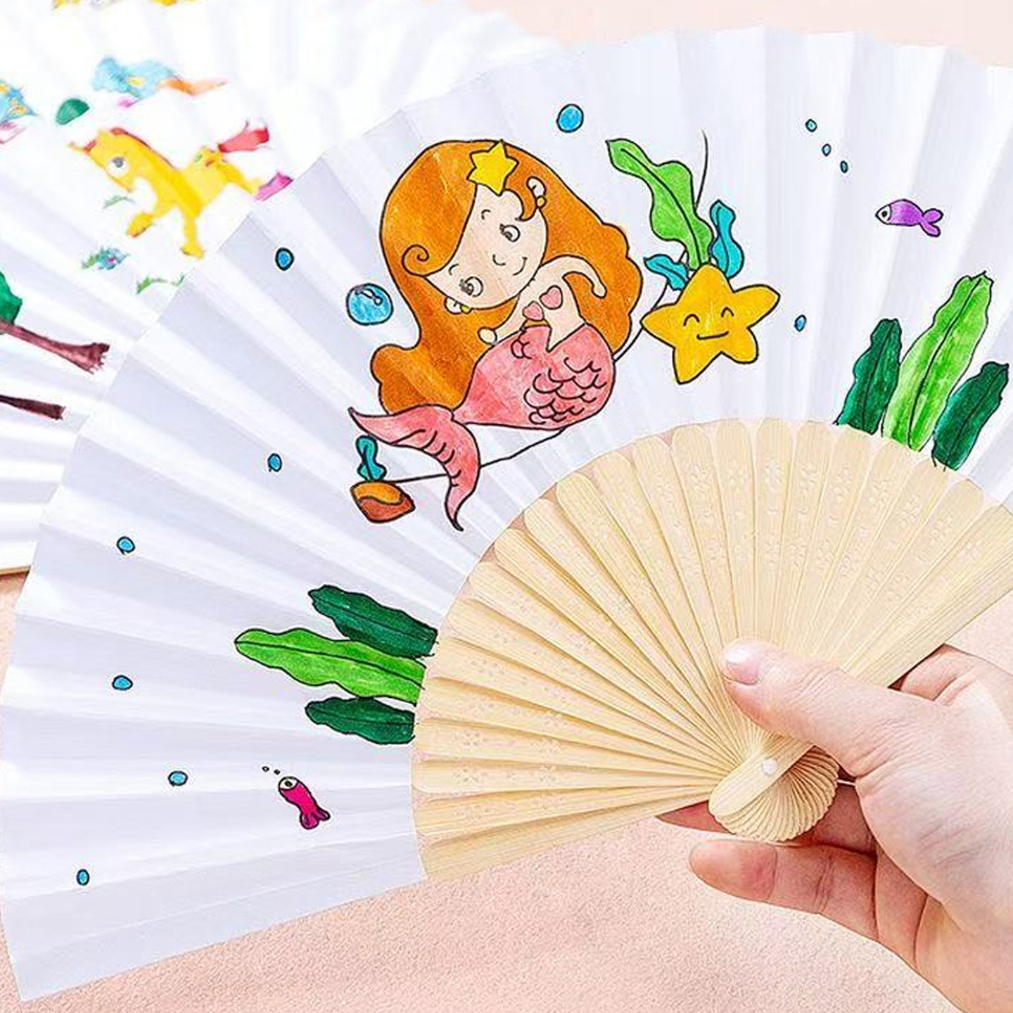 📚 儿童diy大中小号空白纸扇手工扇折扇双面纸扇绘画书法书画练习扇