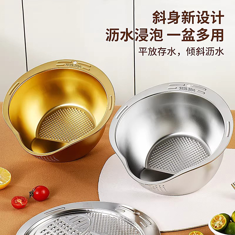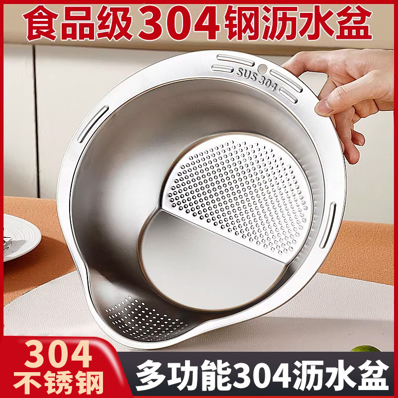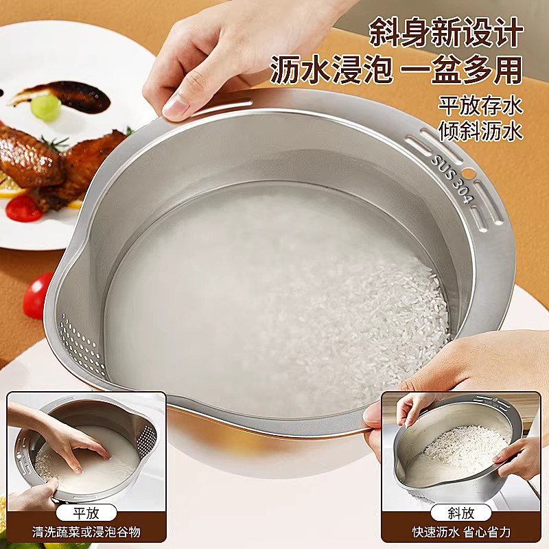 📚 沥水篮不锈钢多功能淘米神器加厚洗米筛水果盘家用厨房专用洗菜盆