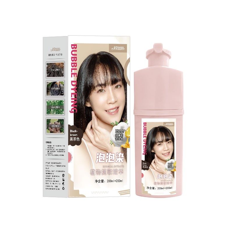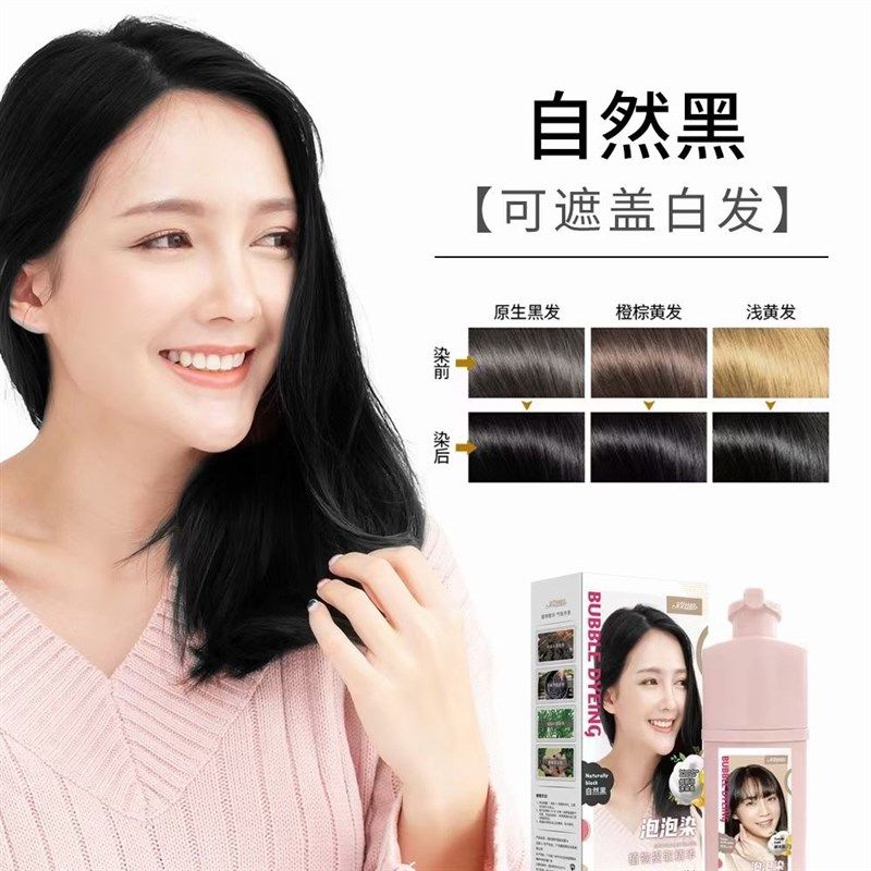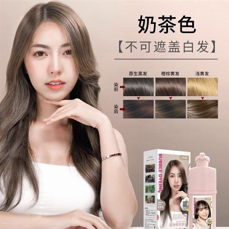 📚 黑茶色染发膏免漂奶茶色纯直接洗发剂植物遮盖白剂泡泡局部补根女