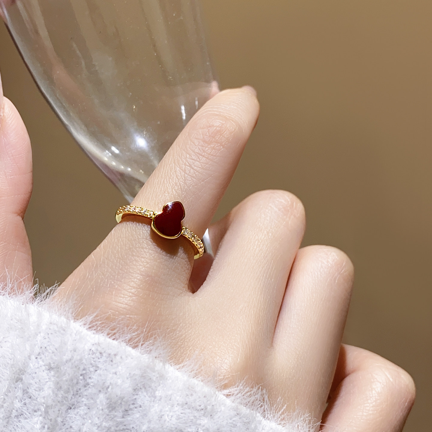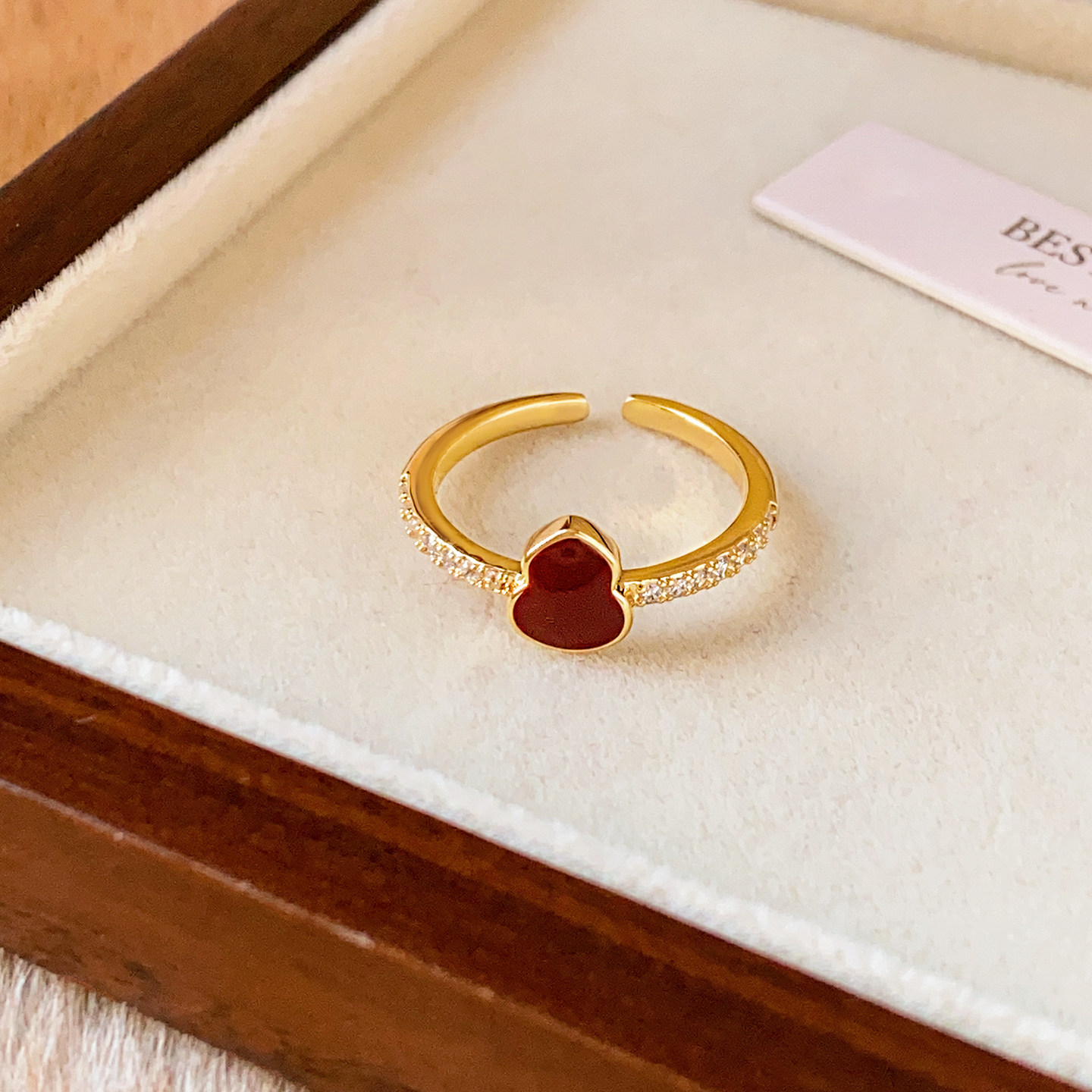 📚 玄学旺财红色葫芦微镶开口戒指女轻奢高级感小众设计食指指环