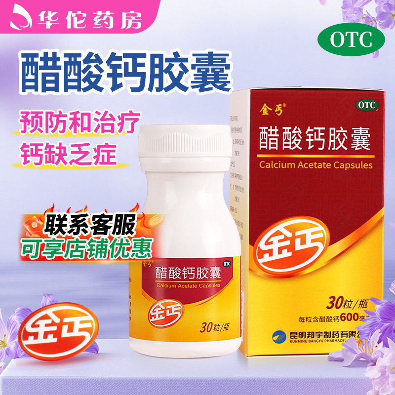📚 金丐醋酸钙胶囊30粒15粒预防治疗钙缺乏症骨质疏松手足抽搐佝偻病
