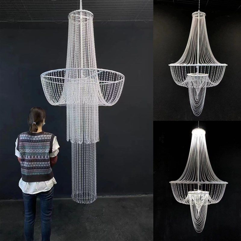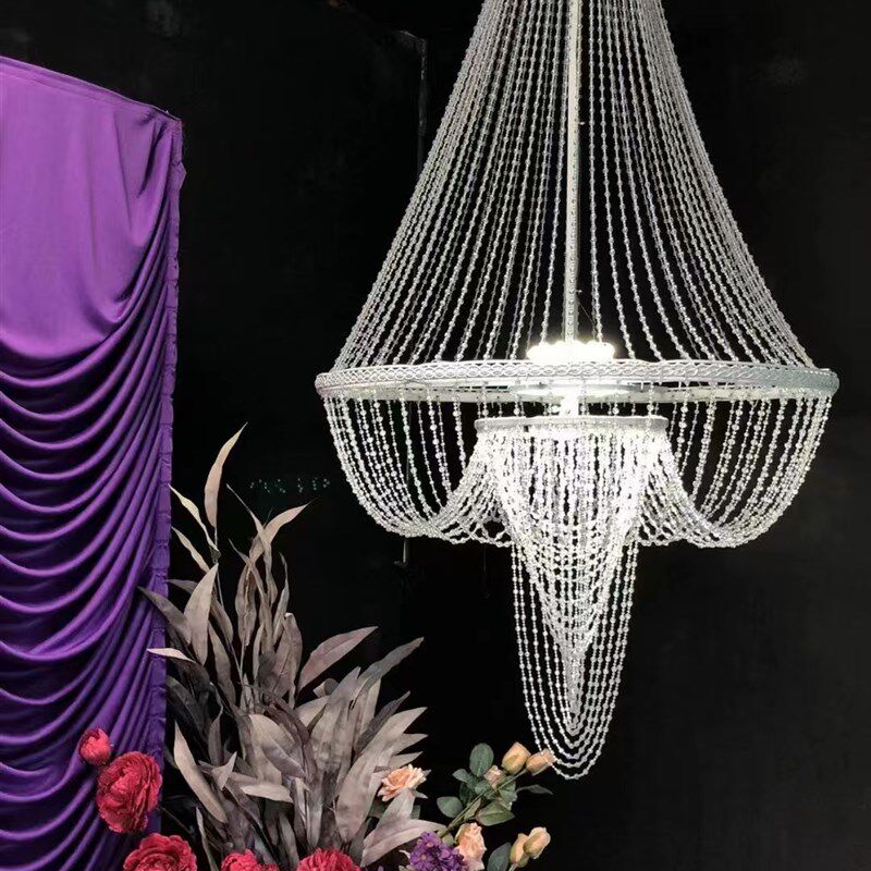 📚 西式伊川水晶灯珠帘压克力成品酒店婚礼堂舞台悬吊式天花板挂件婚