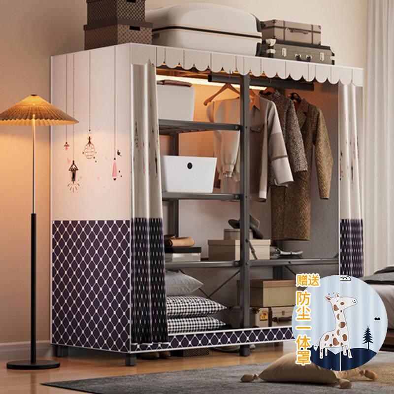 📚 简易折叠布衣柜免安装金属框架加厚钢结构布套全封闭拉链挂衣架