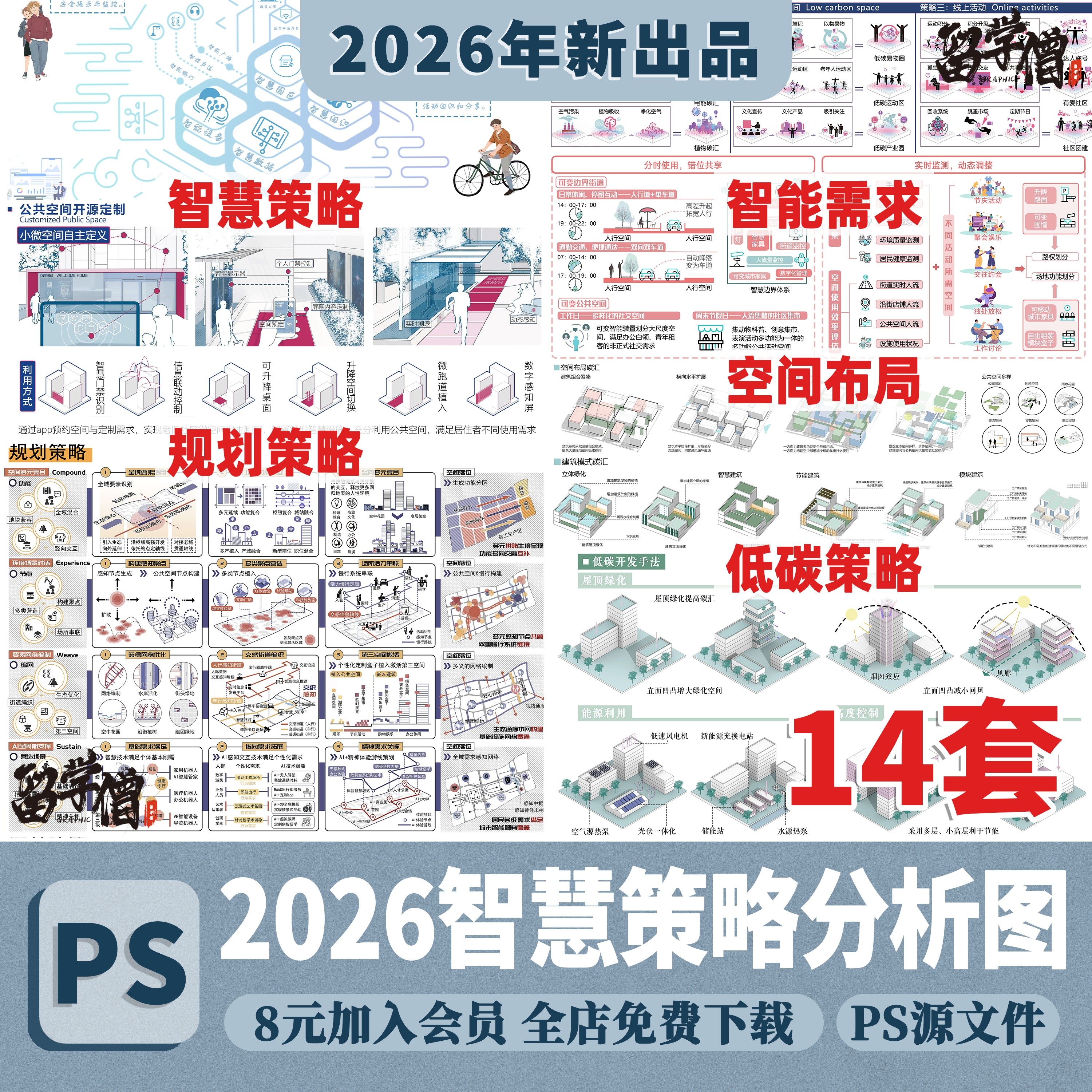 📚 智慧低碳策略分析图PS素材未来智能生活建筑景观城市设计PSD分层
