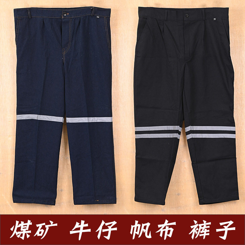 📚 工作服裤子男煤矿井下反光条裤子劳保裤子耐磨耐脏矿工裤牛仔帆布