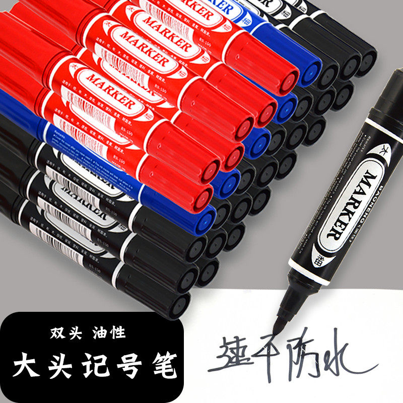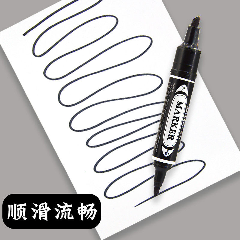 📚 粗头双头油性记号笔大号儿童幼儿园美术绘画专用黑色尖头大头勾线笔小学生手抄报粗细两头双头丙烯马克笔单只