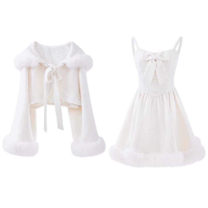 📚 瑞拉仙境 重工连帽斗篷+气质吊带裙毛呢套装裙2025冬季甜美两件套