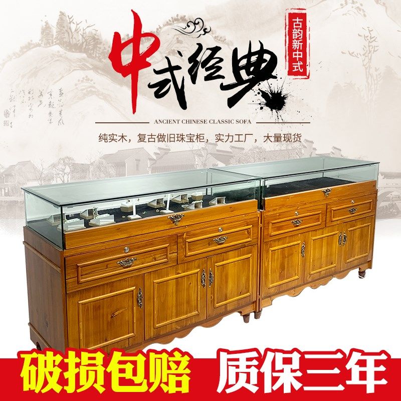 📚 实木珠宝展示柜古董博物馆复古玻璃展G柜饰品翡翠首饰定制玉器柜