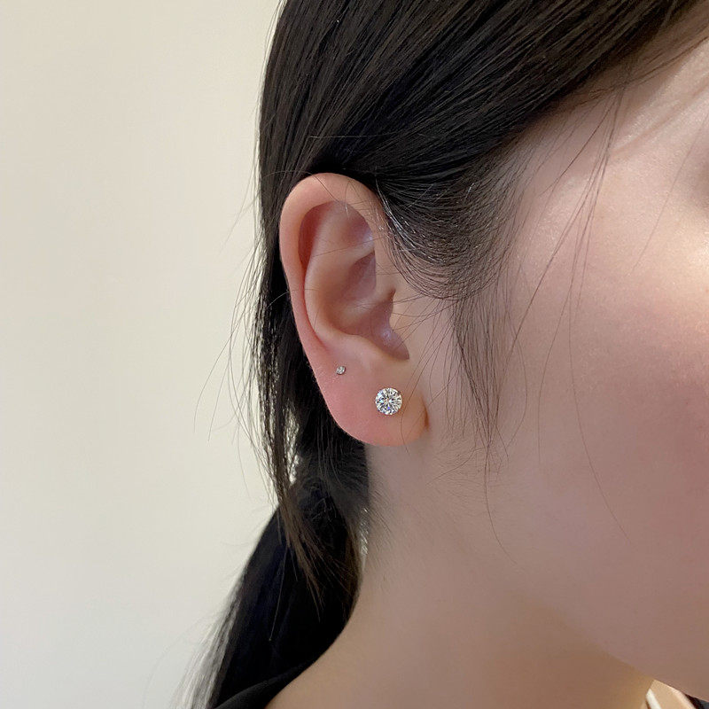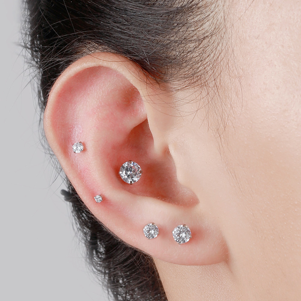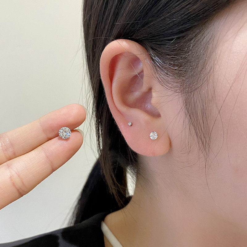 📚 钛钢抓钻锆石细针螺丝扣耳骨钉迷你小号圆锆耳蜗钉小耳钉耳垂钉女