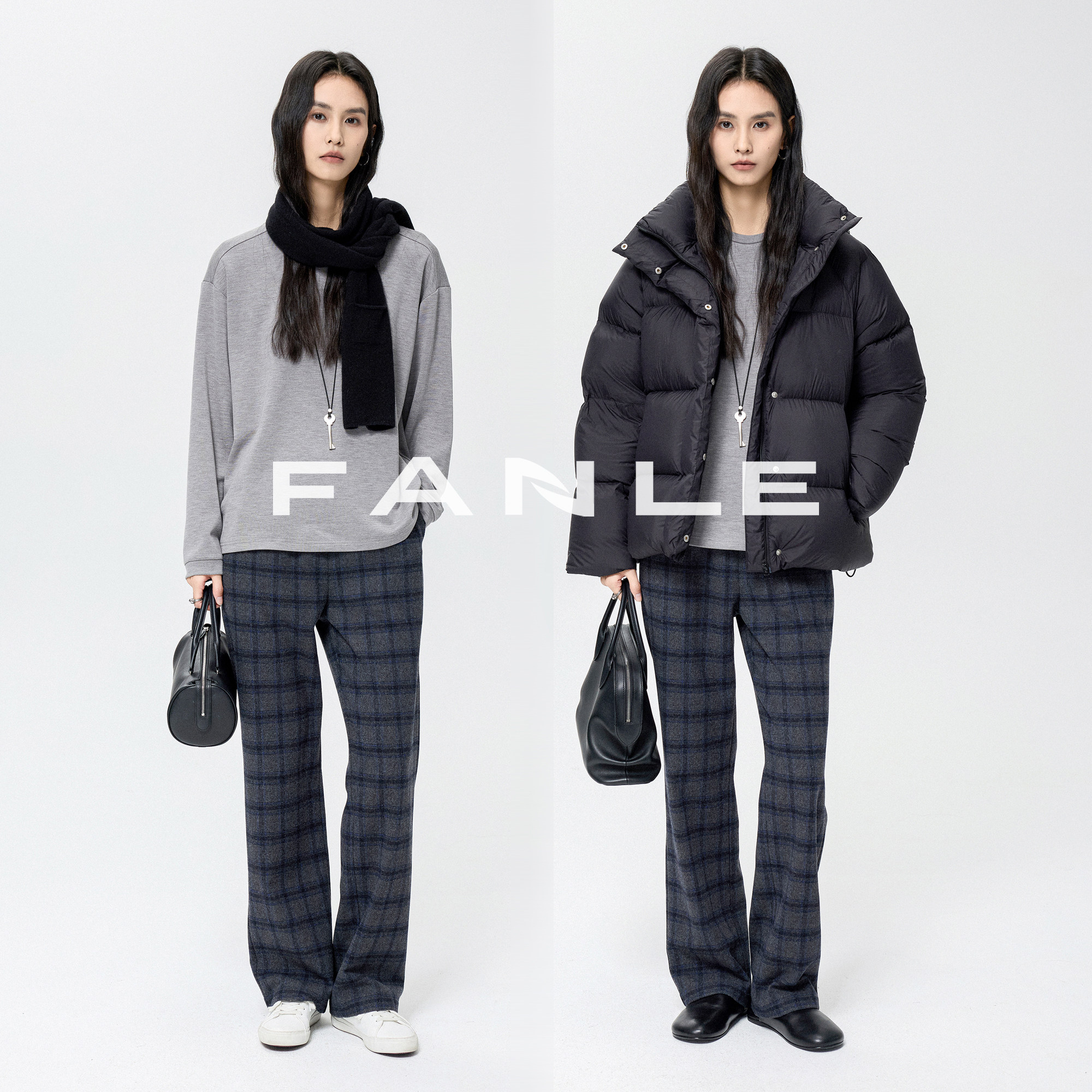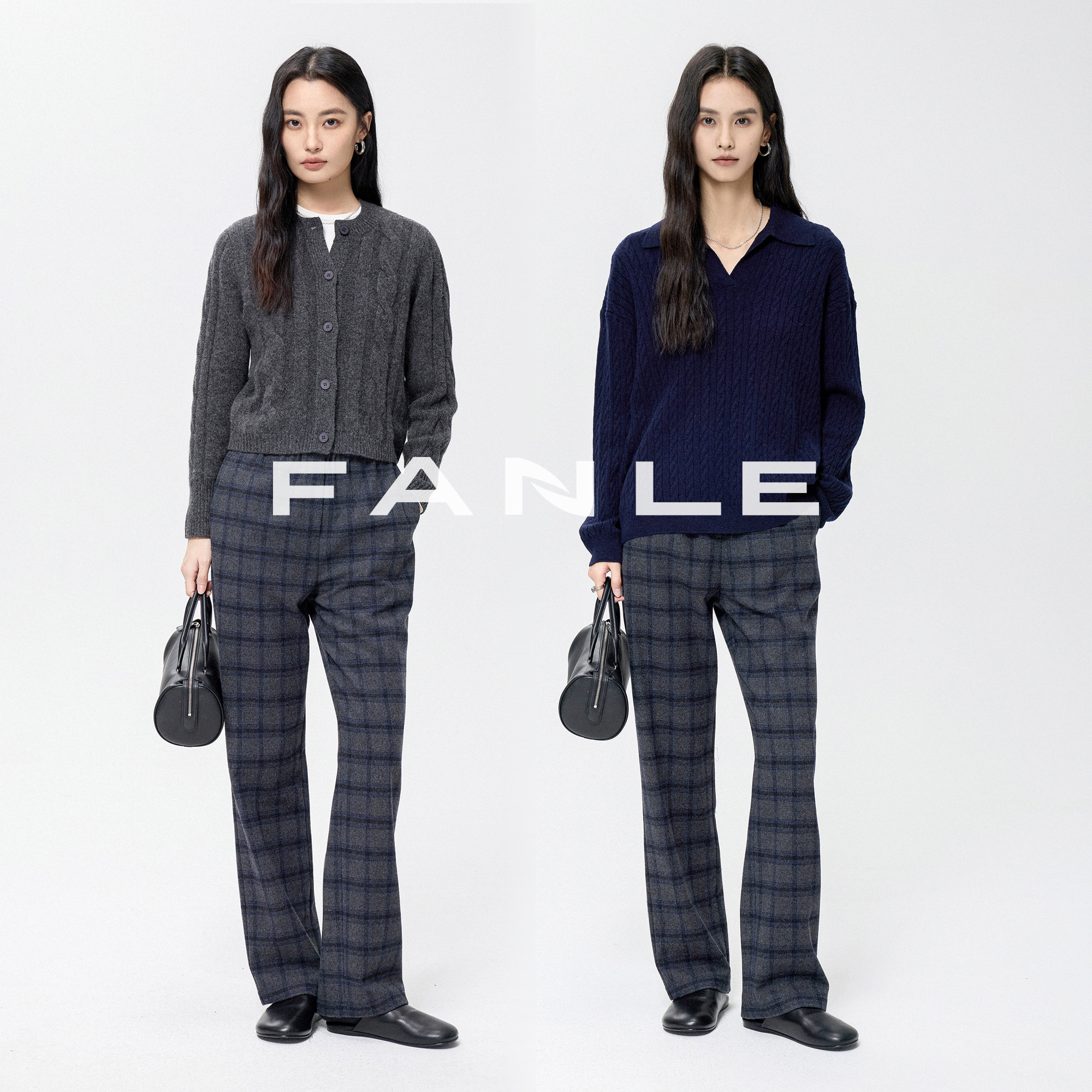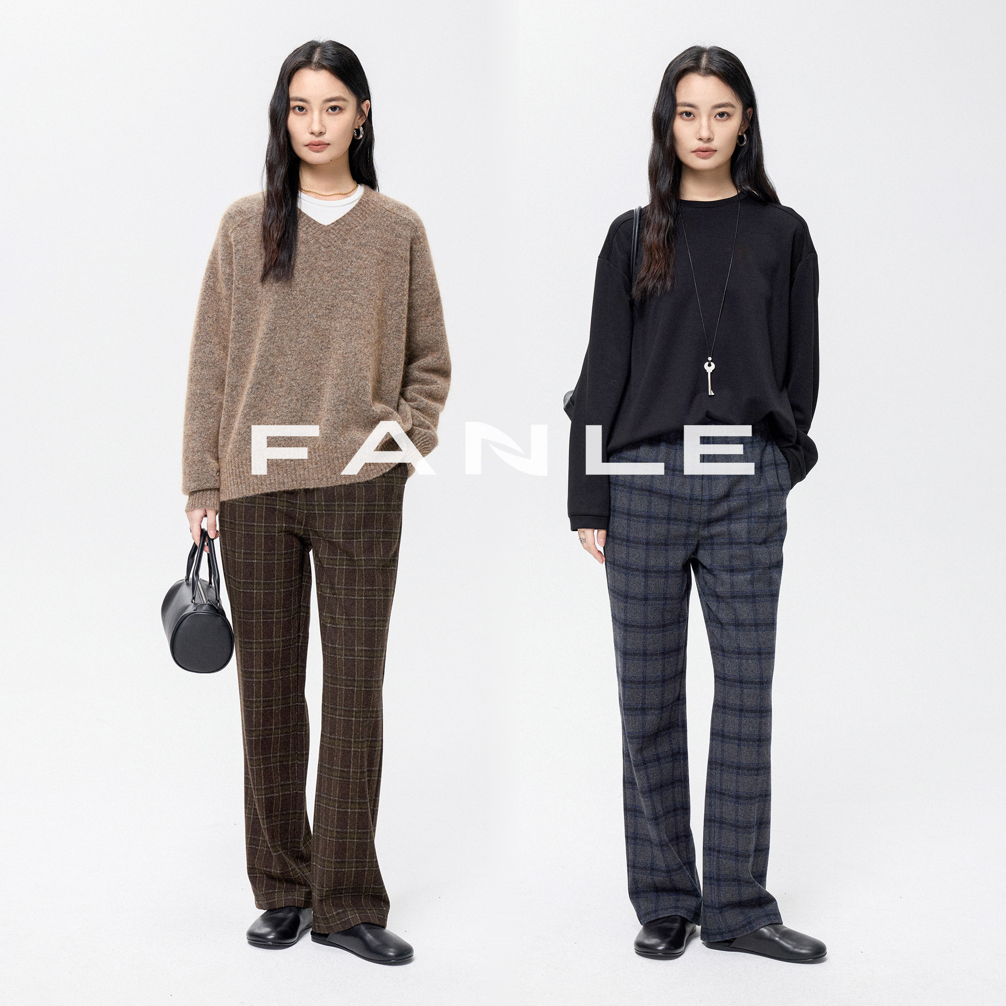 📚 FANLE STUDIOS进口色织格纹精纺羊毛复古松弛牛筋高腰慵懒阔腿裤