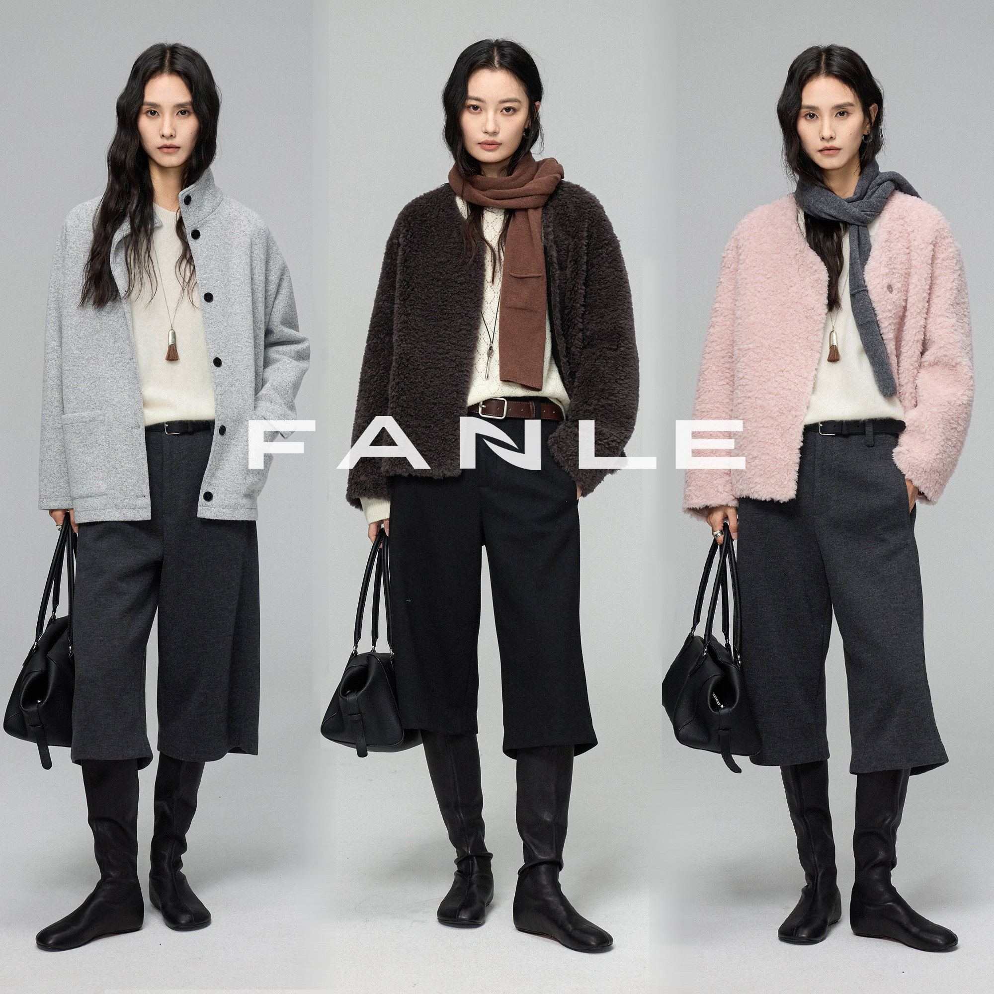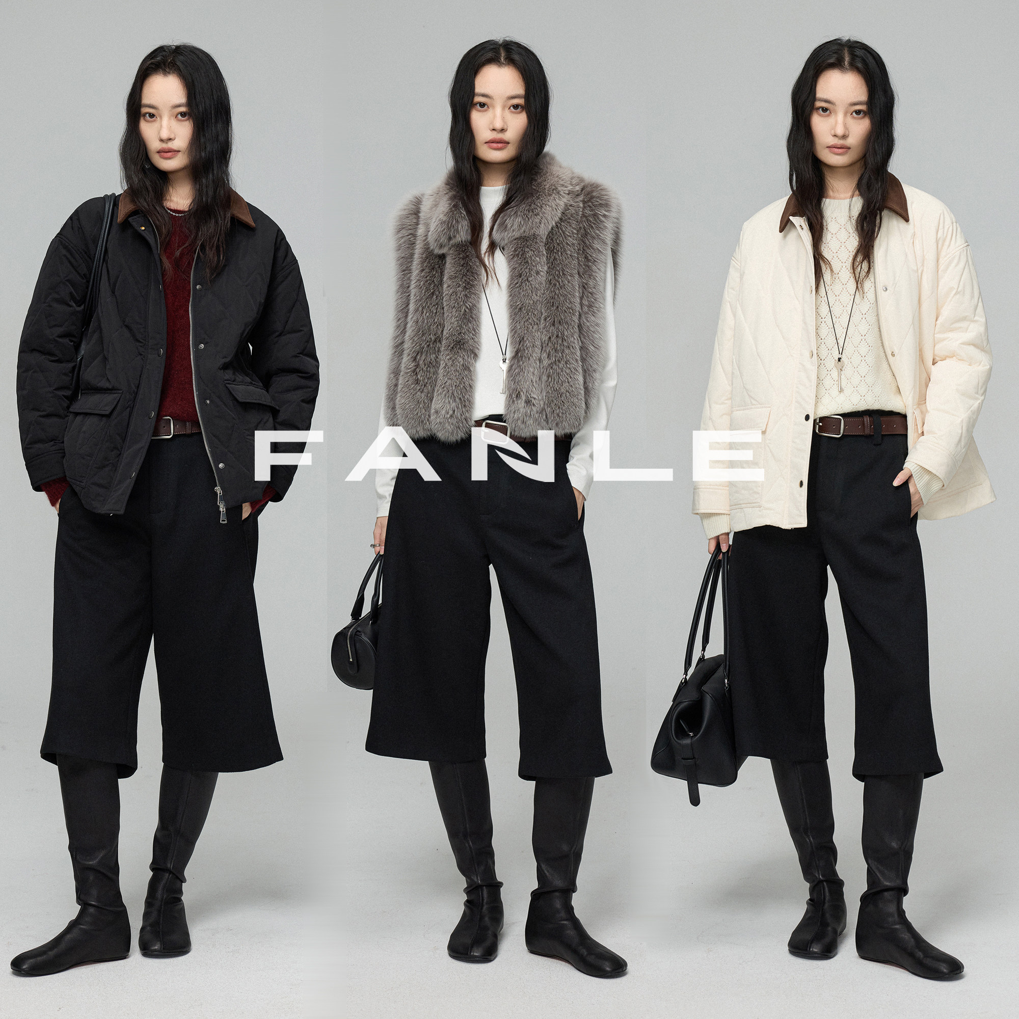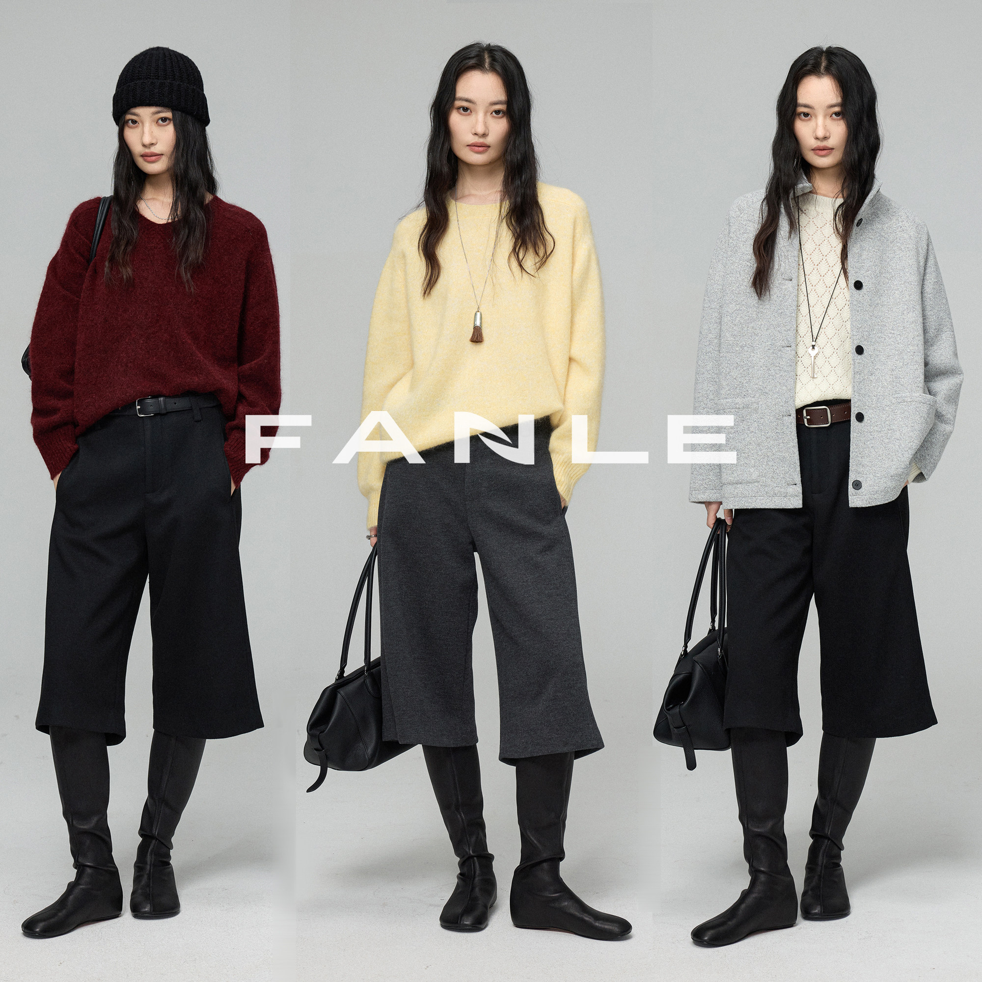 📚 FANLE STUDIOS 细腻羊毛毛呢保暖加厚复古分割时髦高腰直筒七分裤