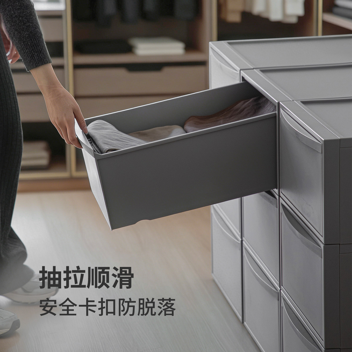 📚 霜山抽屉式收纳箱可叠加卧室床头五斗柜衣服整理柜桌下文件置物柜