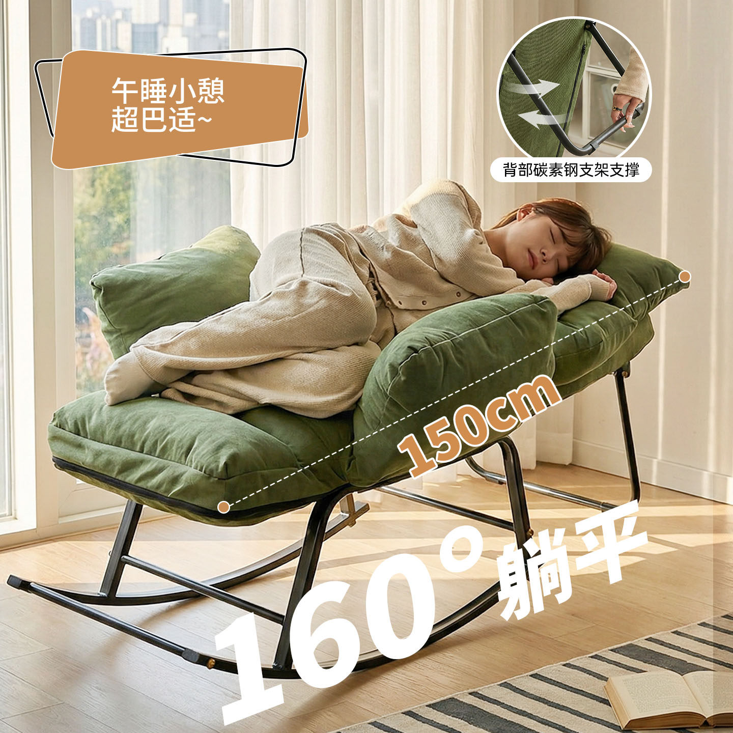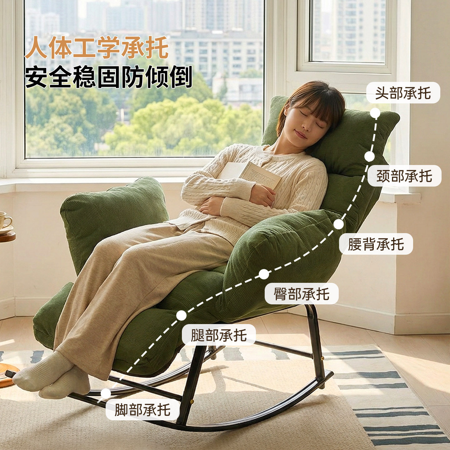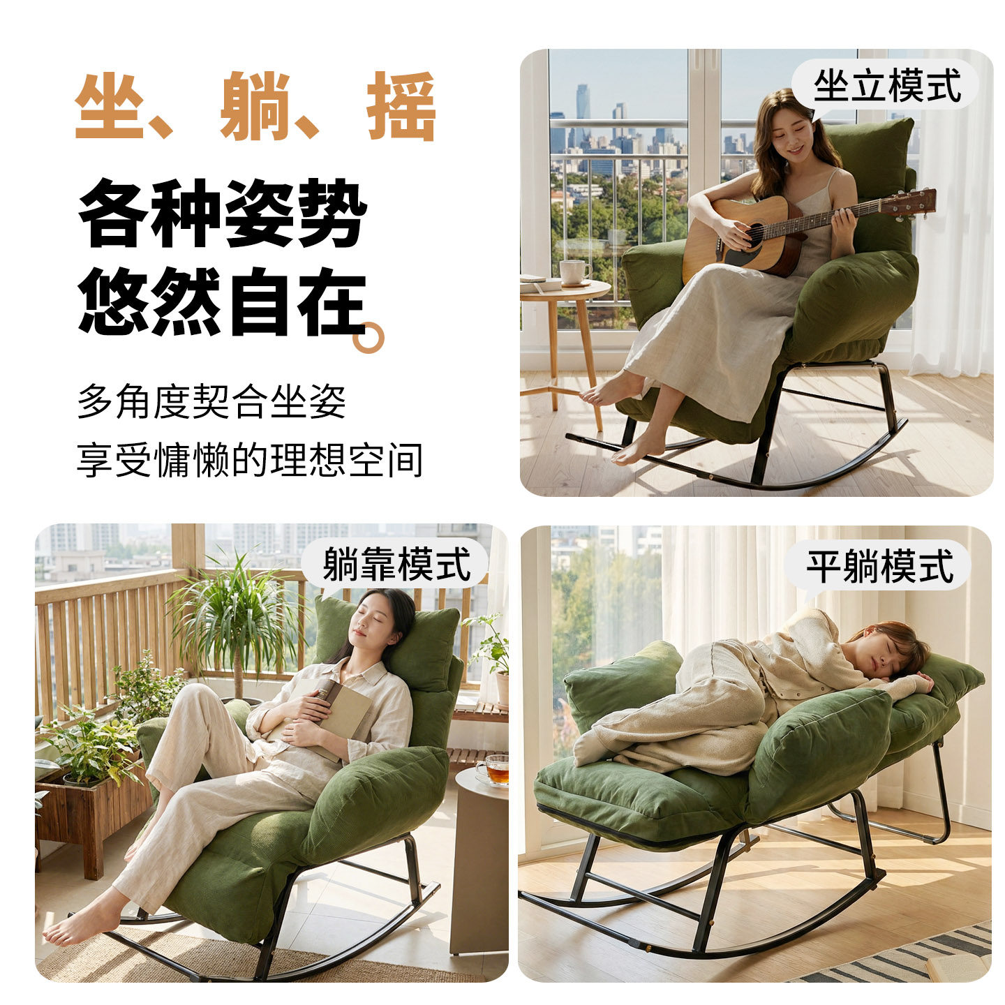 📚 懒人摇摇椅躺椅阳台休闲椅客厅轻奢逍遥椅可睡可躺沙发椅坐躺两用