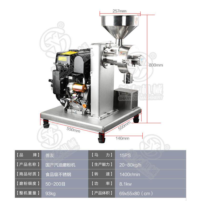 📚 善友汽油发动磨粉机不锈钢五谷15P汽油磨磨粉杂粮机商用超细户外