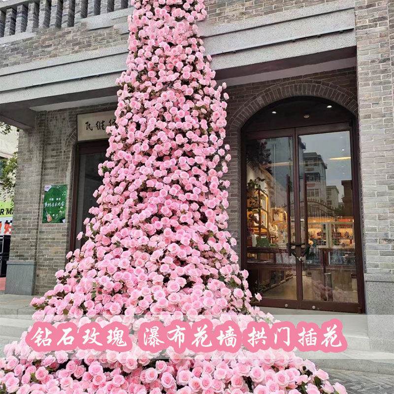 📚 钻石玫瑰婚庆仿真花瀑布花墙拱门插花花材婚礼堂软装居家摆件假花