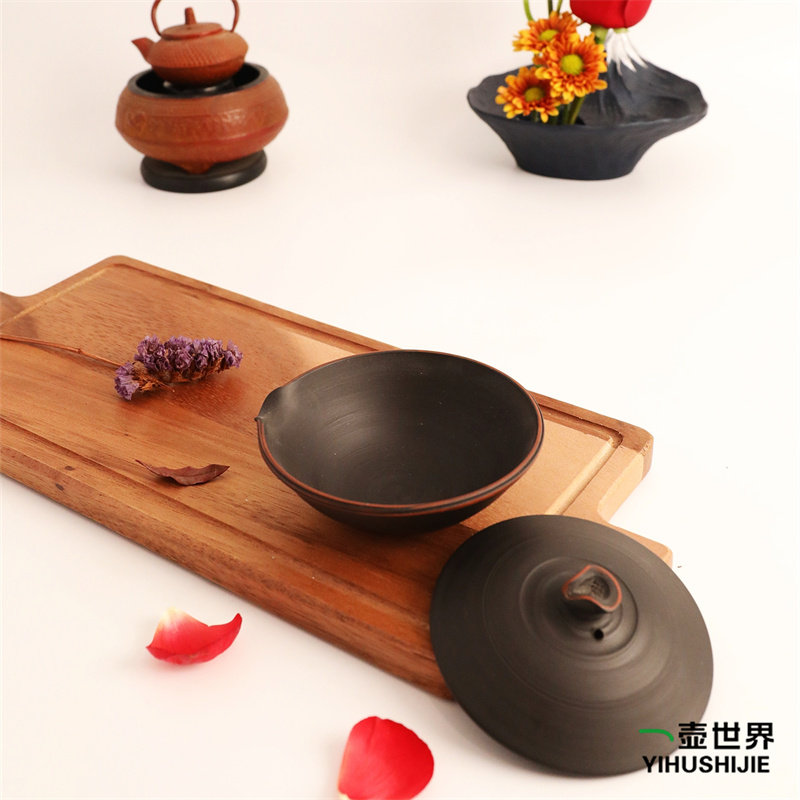 📚 日本常滑烧 风月 -3 研黑绞り出し60ml 纯手工日式紫砂煎茶陶盖碗