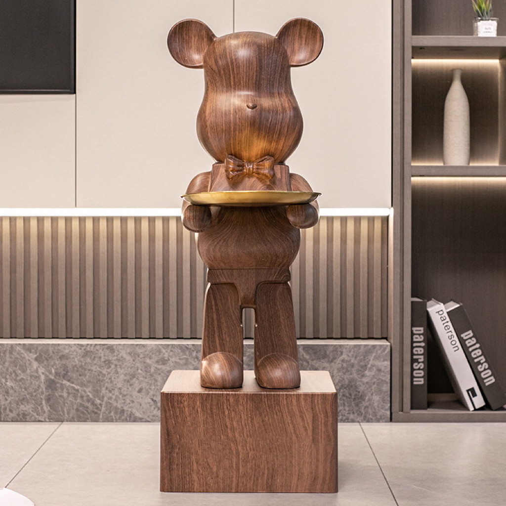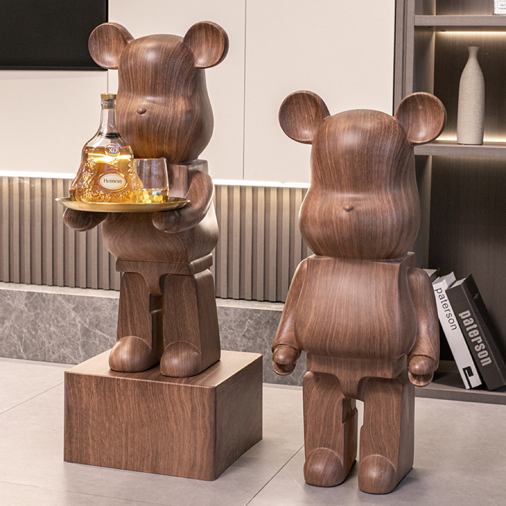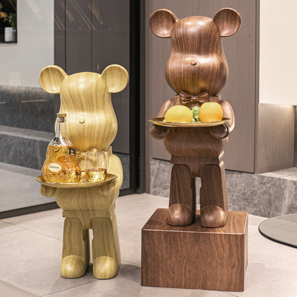 📚 网红暴力熊大摆件存钱罐中古风美式胡桃木简约客厅电视柜落地装饰