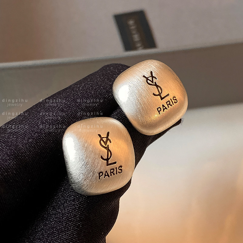 📚 银色字母拉丝耳环女简约通勤复古气质耳钉高级感轻奢新款金属耳饰