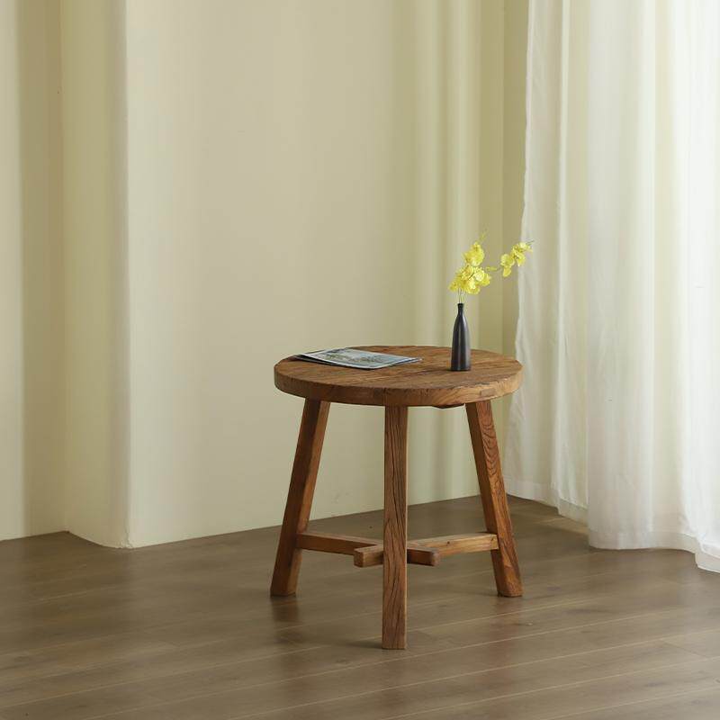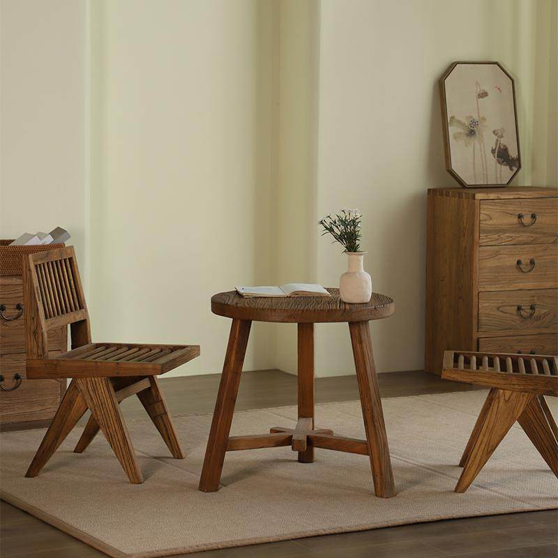 📚 侘寂风老榆木茶几客厅家用高级感小户型实木沙发边几矮茶桌小圆桌