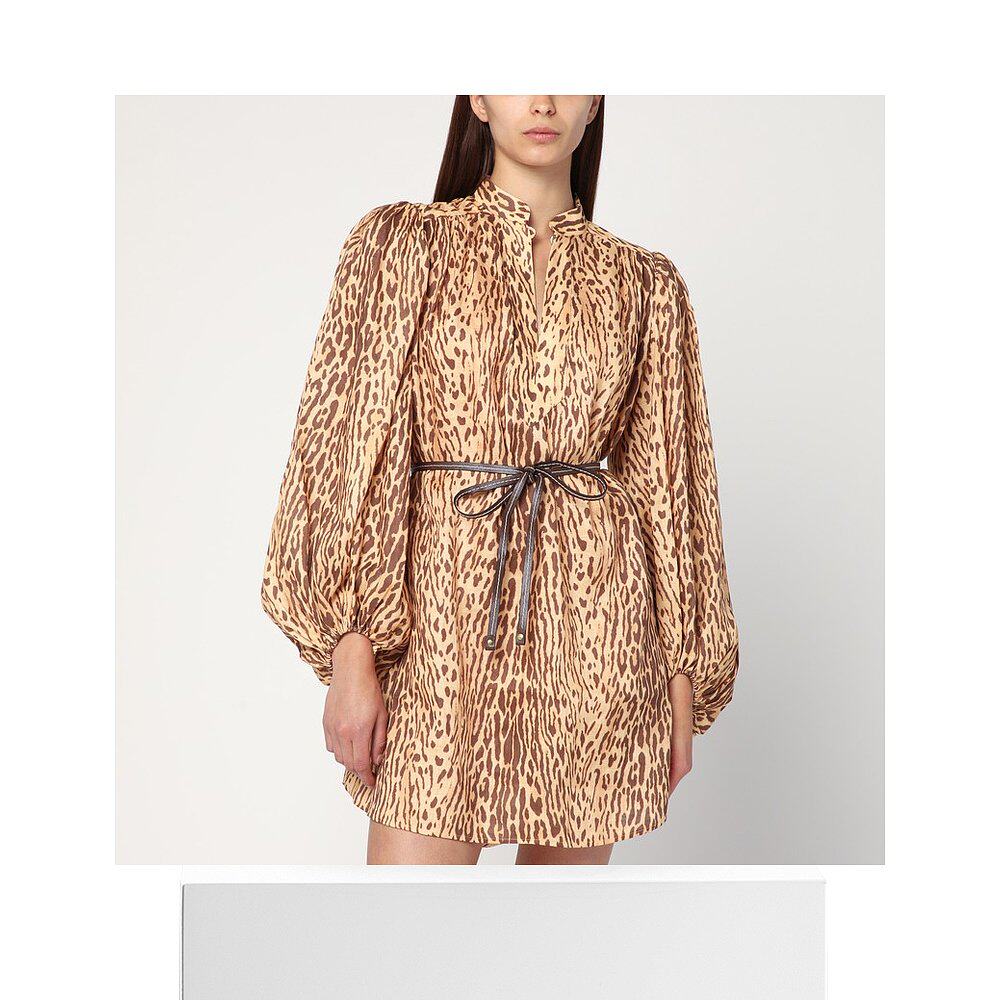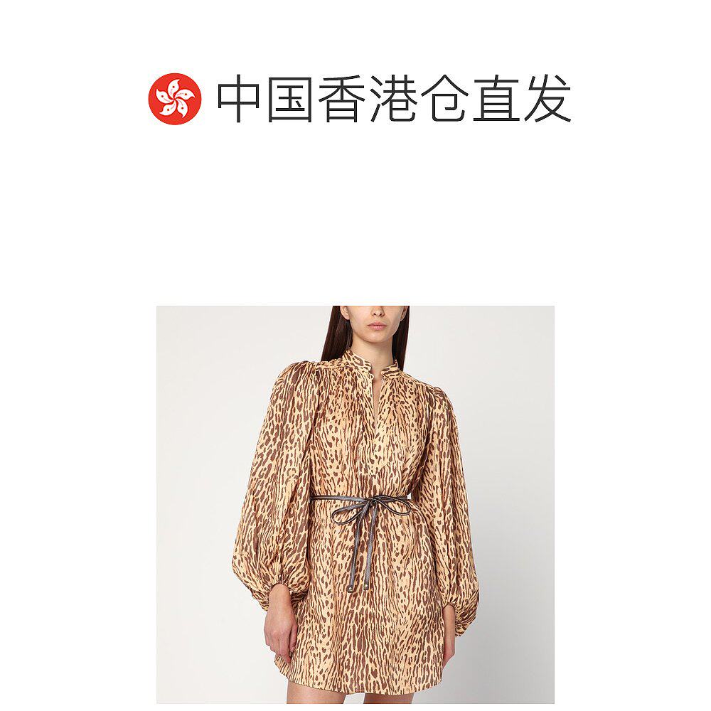📚 香港直邮ZIMMERMANN 女士 豹纹短款亚麻连衣裙 4593DSS255