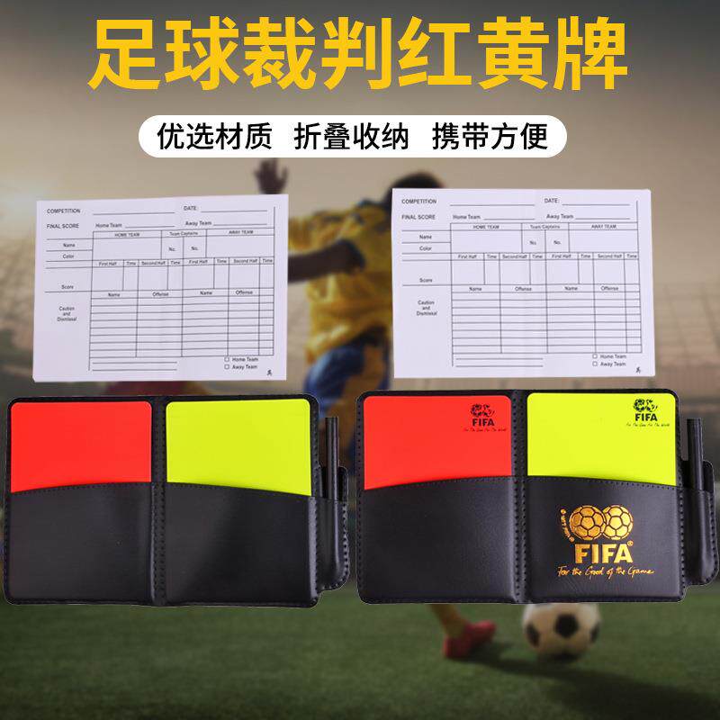📚 足球加厚红黄牌 记录本红牌黄牌裁判工具带皮套记录纸铅笔 裁判用