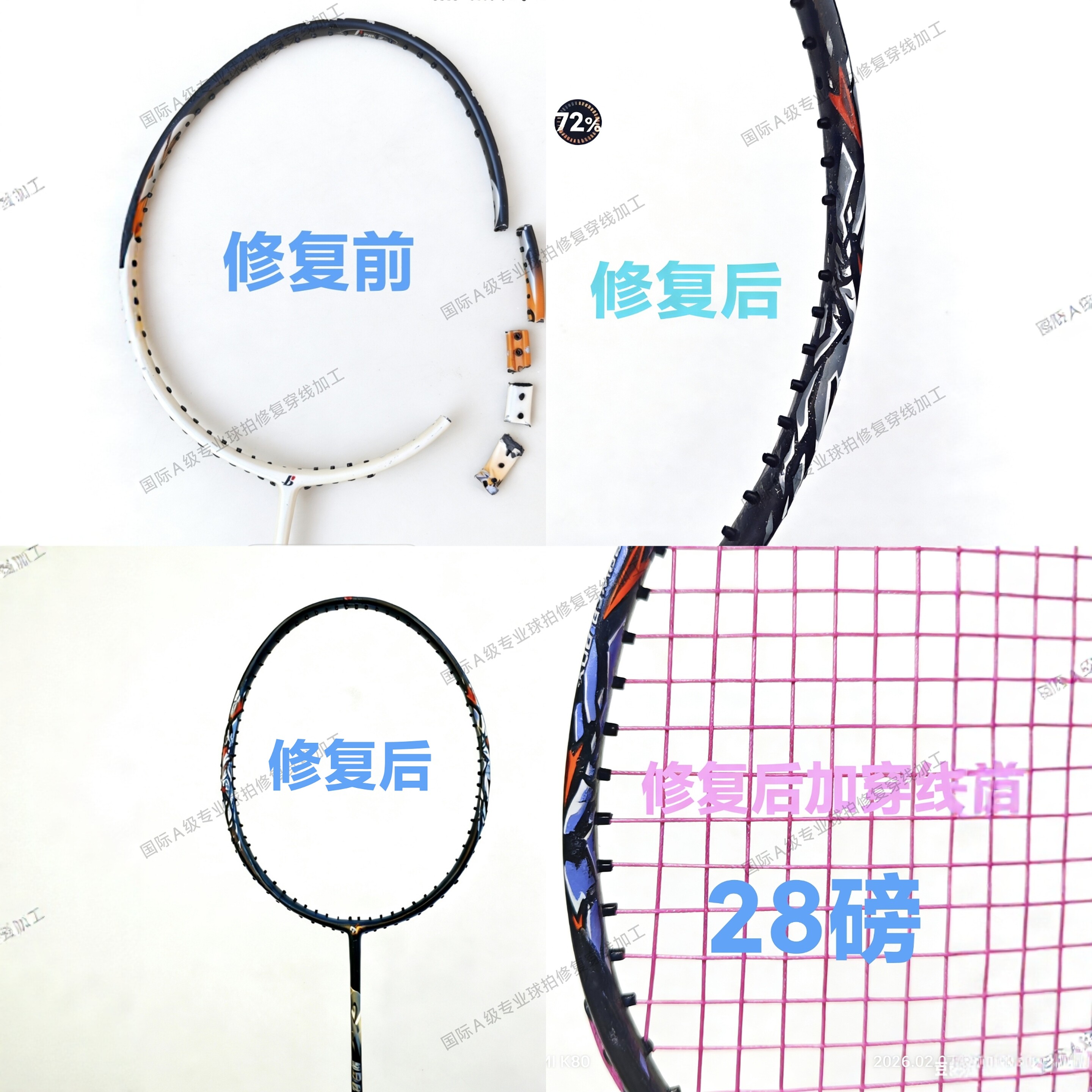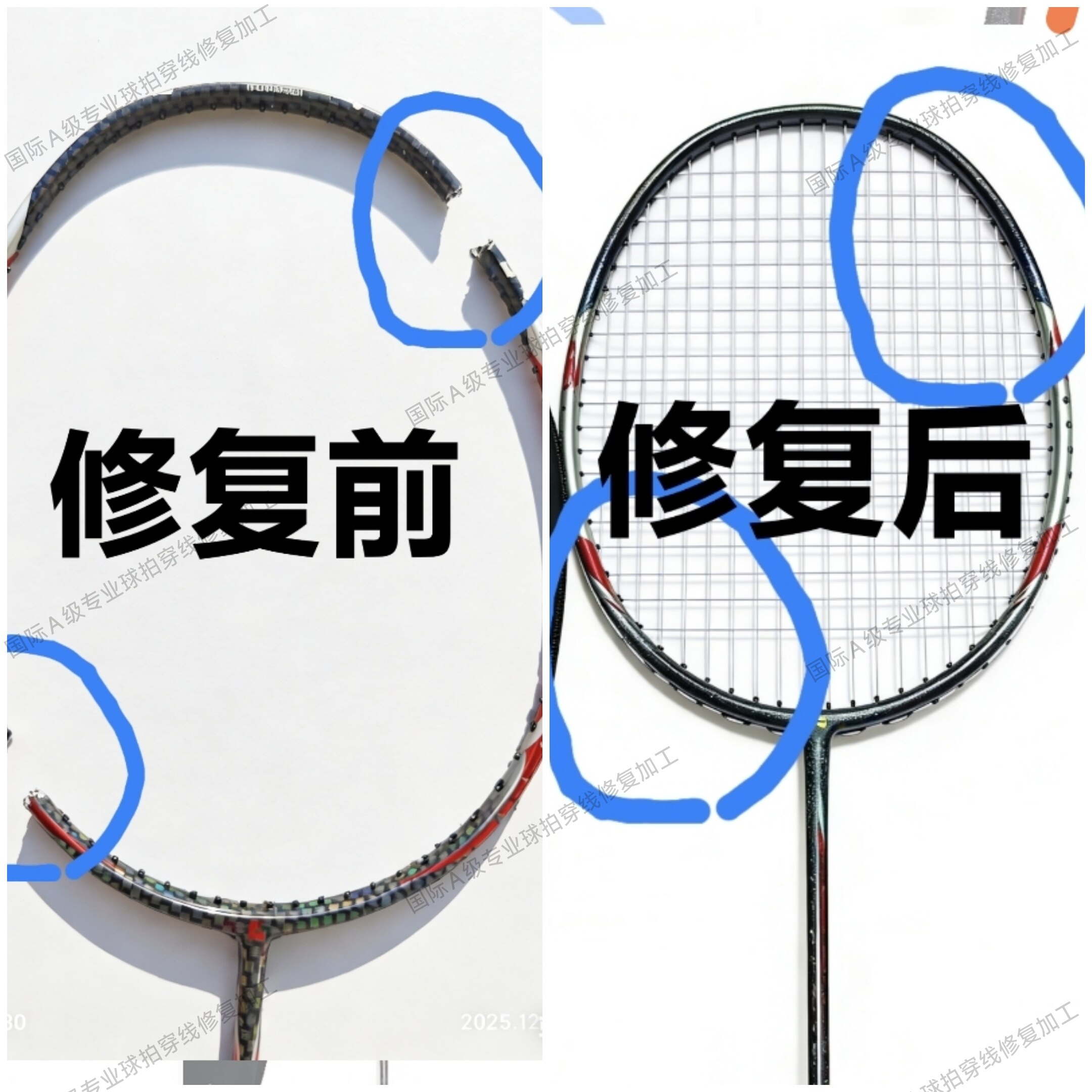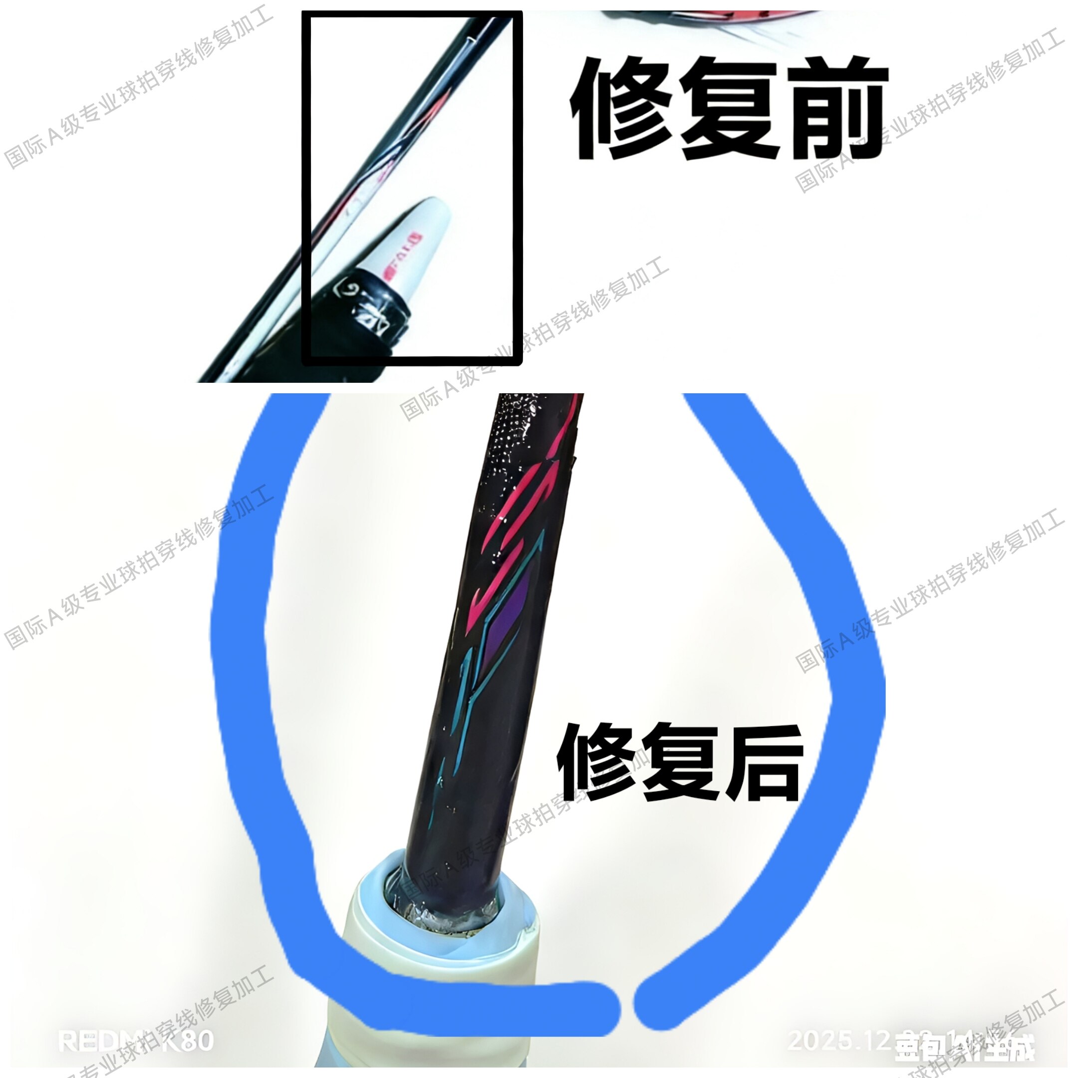 📚 羽毛球拍碳素烤漆精修标准中杆贴护线管专业断裂修复破损修补维修