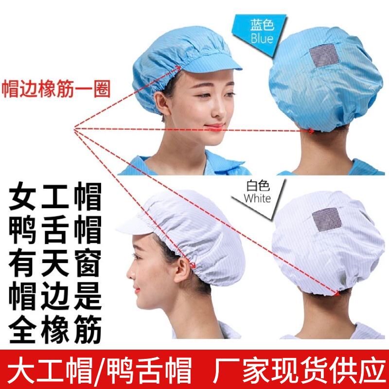 📚 防静电男女鸭舌工作帽 红黄蓝白无尘小工帽 食品车间工作帽厂家