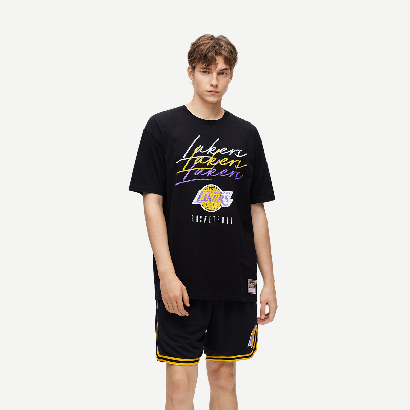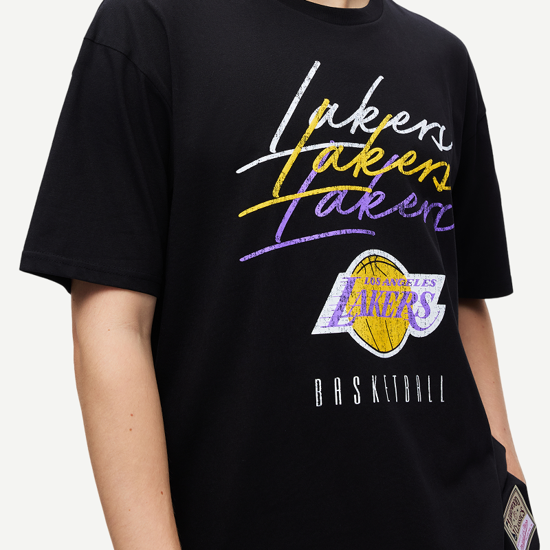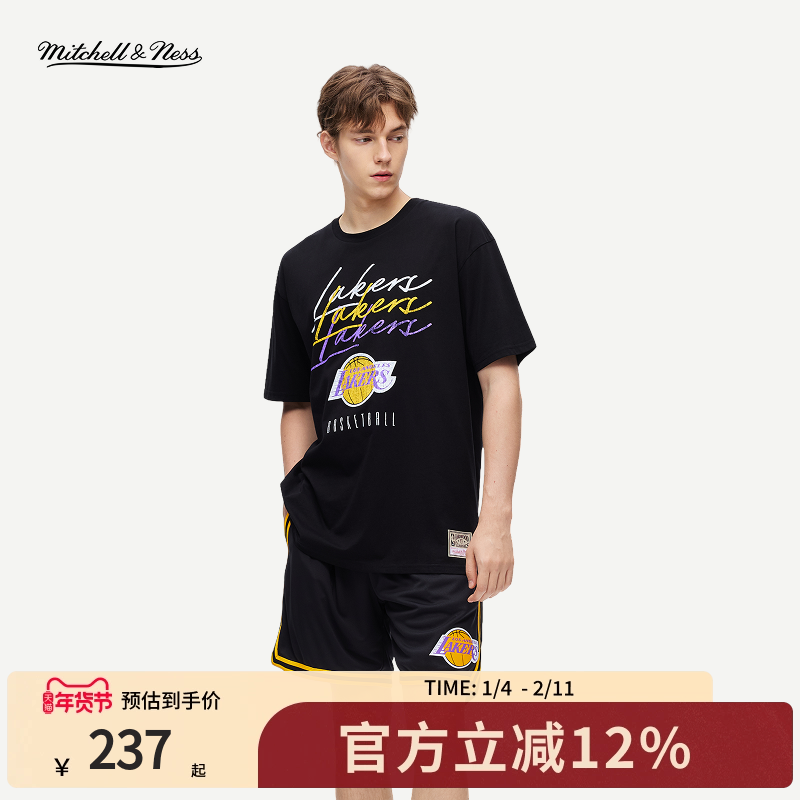 📚 mitchell&ness短袖T恤公牛独行侠勇士湖人太阳做旧印花上衣情侣MN