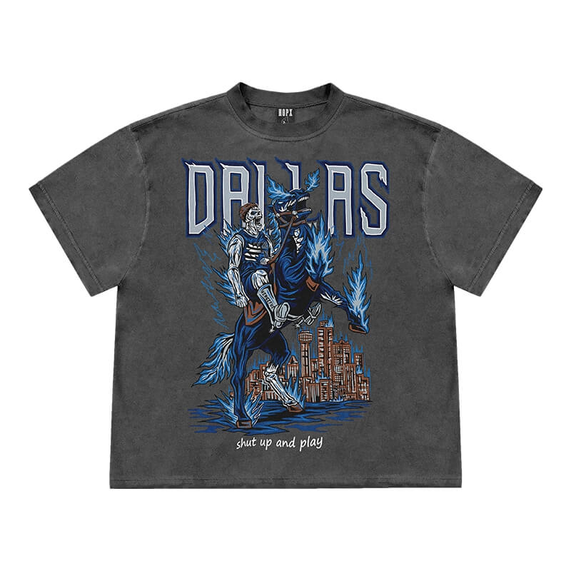 📚 HOPX美式骷髅印花短袖达拉斯独行侠NBA篮球潮牌东契奇欧文纯棉T恤
