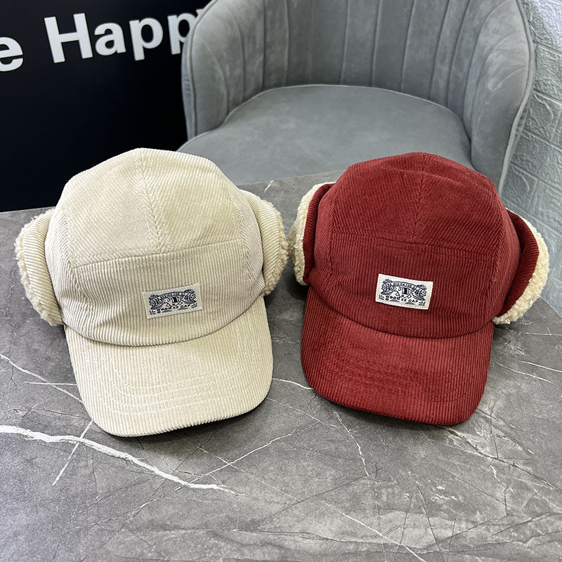 📚 儿童帽子冬季北方旅游男女童加厚加绒灯芯绒保暖护脖护耳鸭舌帽潮