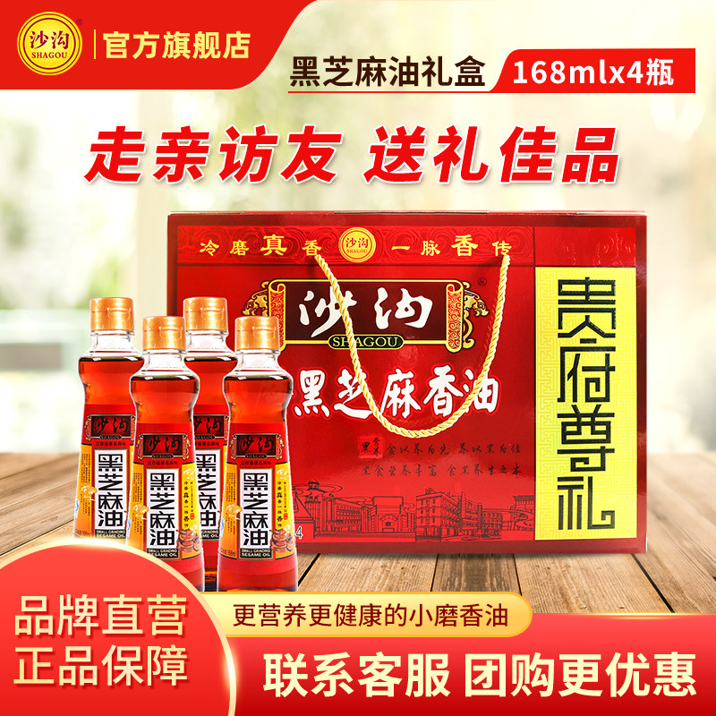 📚 年货节礼盒沙沟黑芝麻香油礼盒装纯正黑芝麻小磨香油节日团购礼品