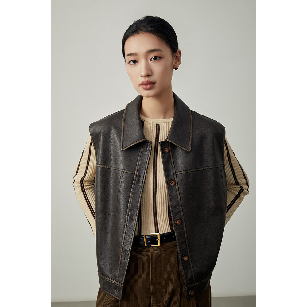 📚 CAREMIND原创无袖设计感马甲女外搭翻领设计感坎肩皮衣外套春季新